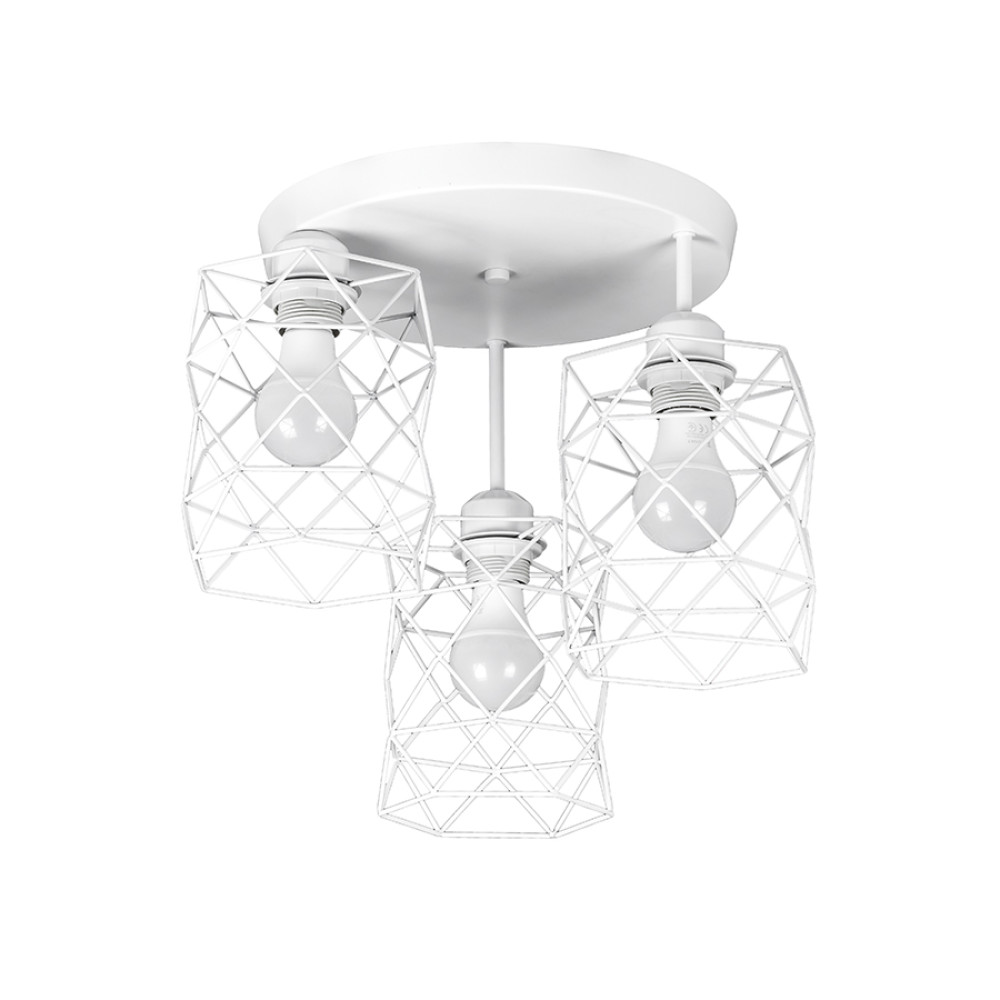 Стельова люстра у стилі лофт на три лампи в сучасному стилі з металевими плафонами у вигляді клітини.