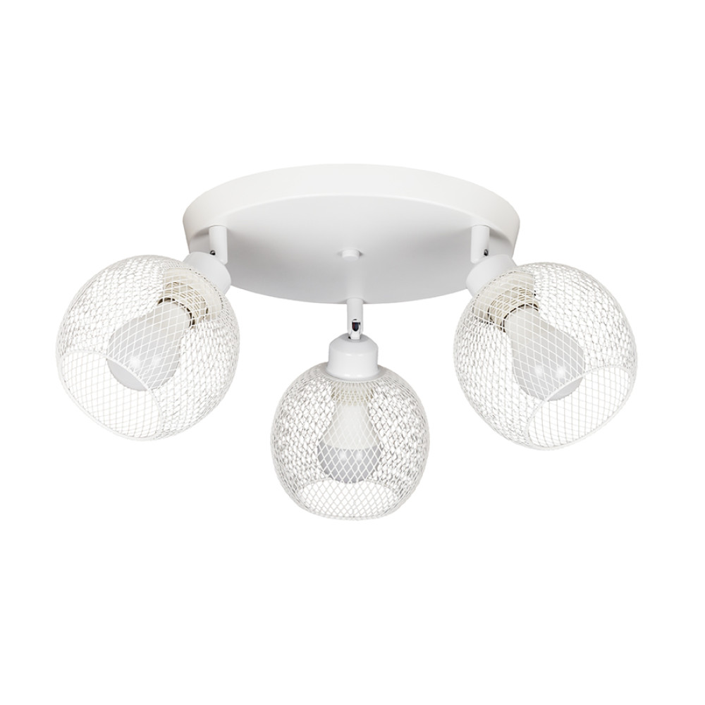 Стельова люстра у стилі лофт на три лампи у сучасному стилі з металевими плафонами круглої форми у вигляді сітки з поворотним механізмом.
