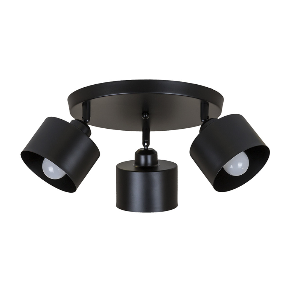 Сучасна стельова люстра (стельовий світильник) у стилі лофт на три лампи з металевими плафонами циліндричної форми з поворотним механізмом. Найкраще використовувати у приміщенні загальною площею 9 м. кв., при використанні ламп 6 Вт (LED) або 60 Вт (стандартна).