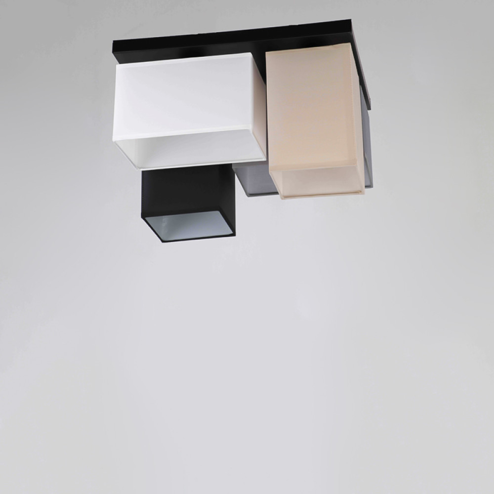 Люстра стельова на чотири лампи c прямокутними плафонами з тканини.