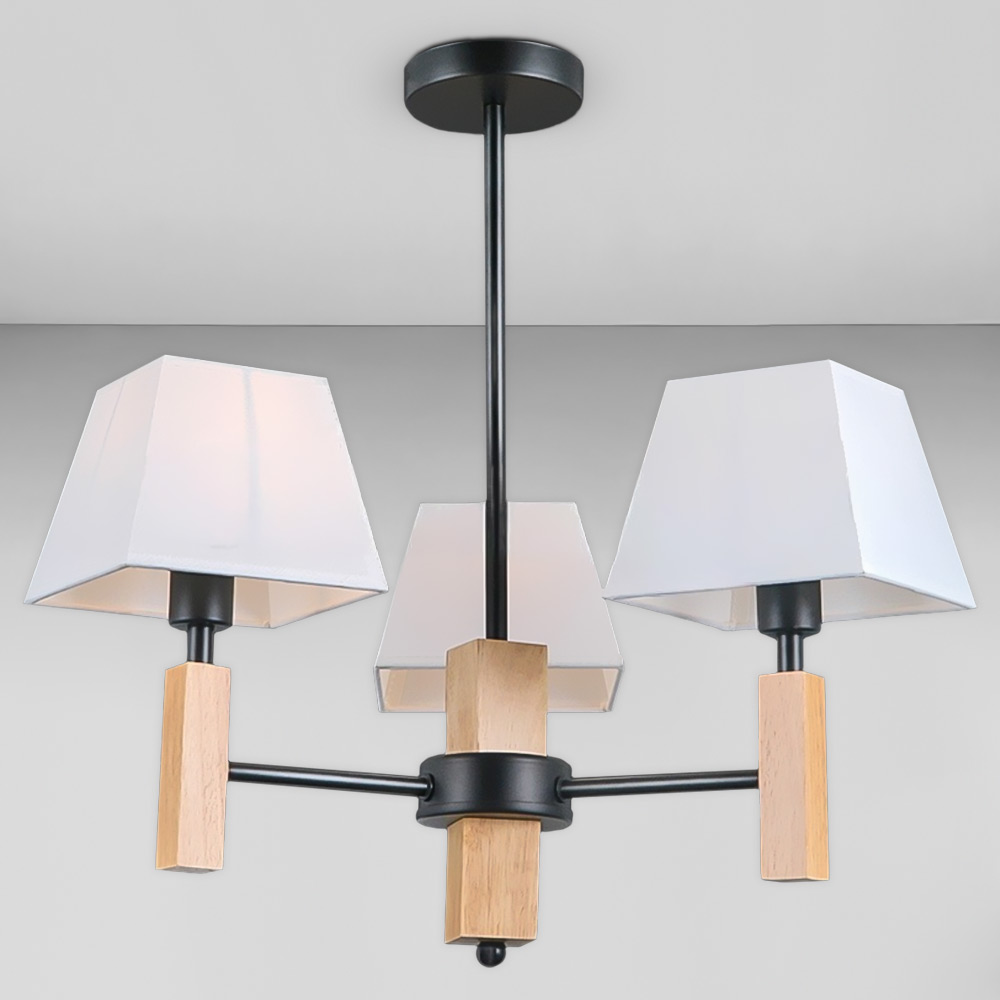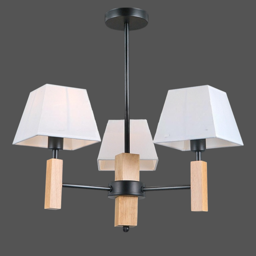 Люстра класична для вітальні – стильний акцент у вашій вітальні, що гармонійно поєднує класику з сучасними елементами дизайну. Завдяки витонченій комбінації чорного металу, дерев'яних деталей та білих текстильних плафонів, ця модель надає теплу, затишку та неперевершеній елегантності вашому інтер'єру.