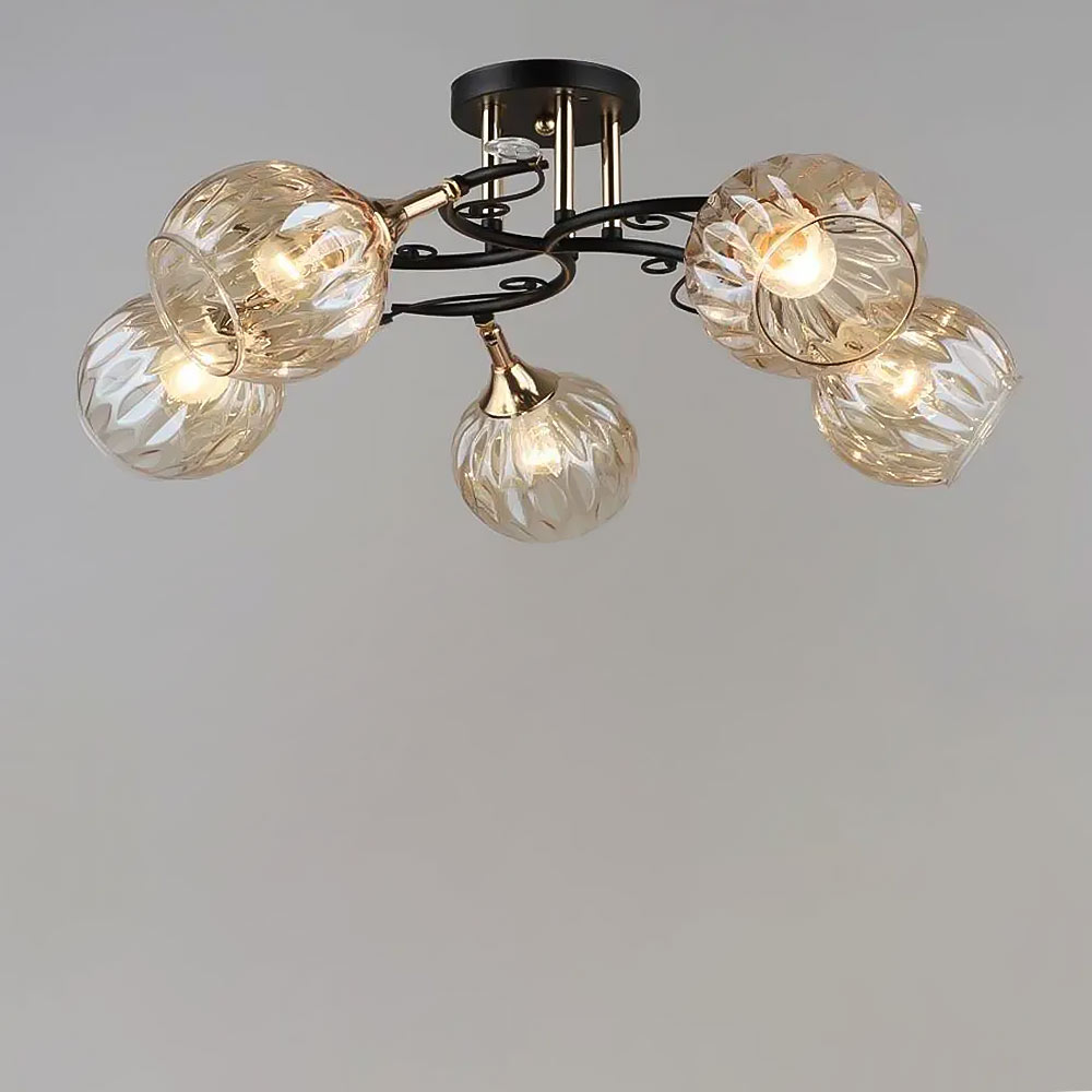 Стельова люстра на п'ять скляних декоративних плафона круглої форми з поворотним механізмом.