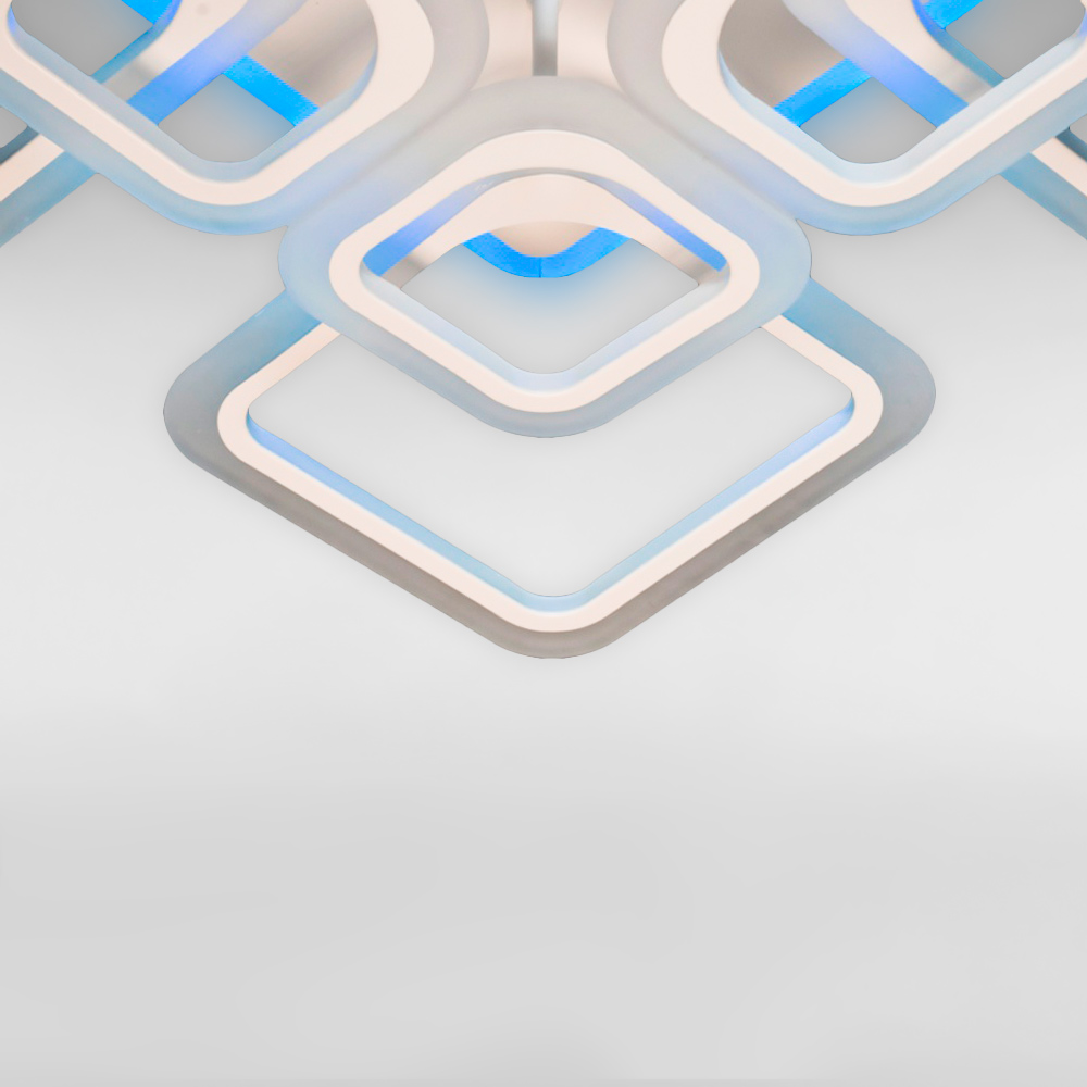Перед Вами результат поєднання найкращих практик у сучасному освітленні. Люстра має підсвічування корпусу, димер і вісім джерел світла у вигляді світлодіодних квадратів.