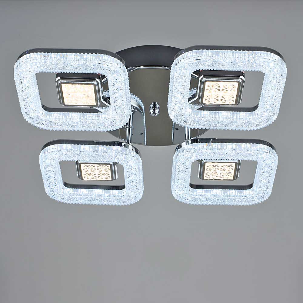 Стельова світлодіодна люстра в сучасному стилі, на чотири акрилові плафони квадратної форми.