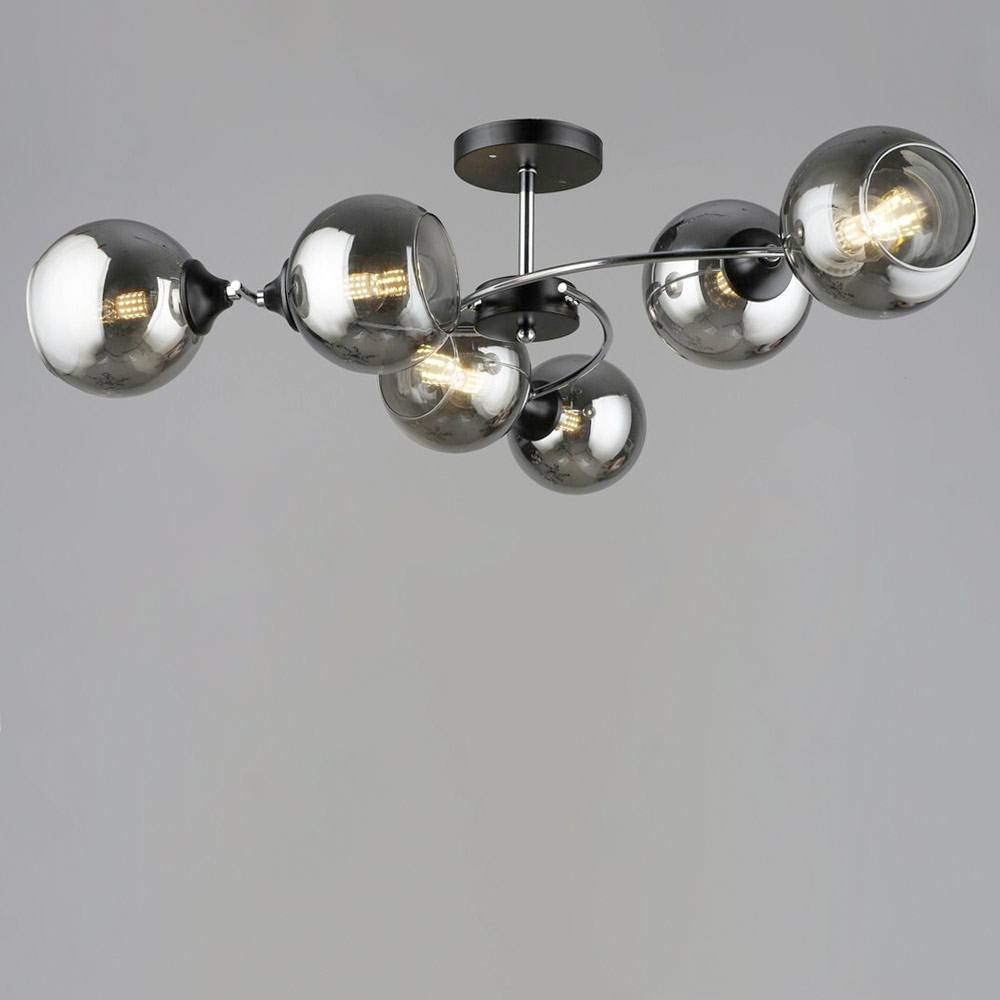 Декоративна стельова люстра-молекула на шість ламп у стилі Лофт зі скляними круглими плафонами.