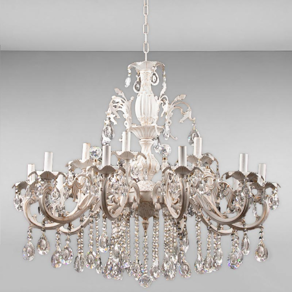 Підвісна люстра у вигляді свічника, на 15 ламп, в класичному стилі з прозорими підвісками. Вона буде королевою вашої кімнати.