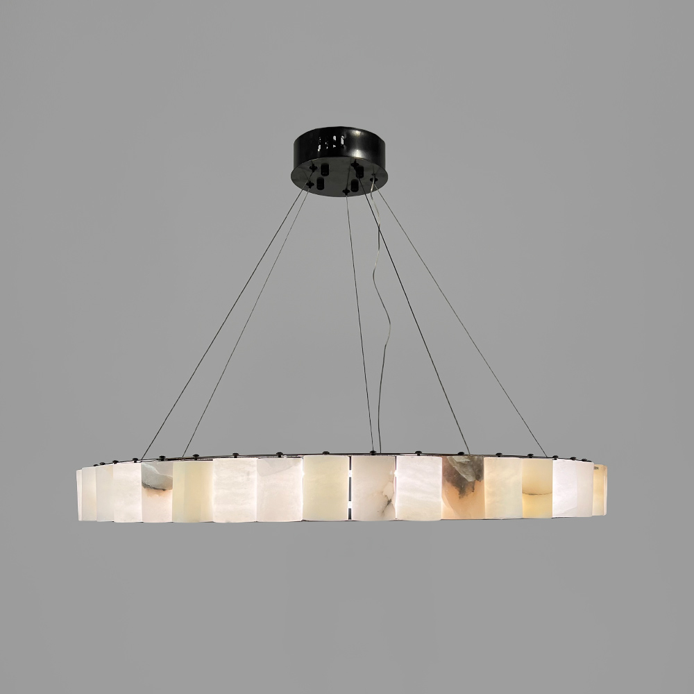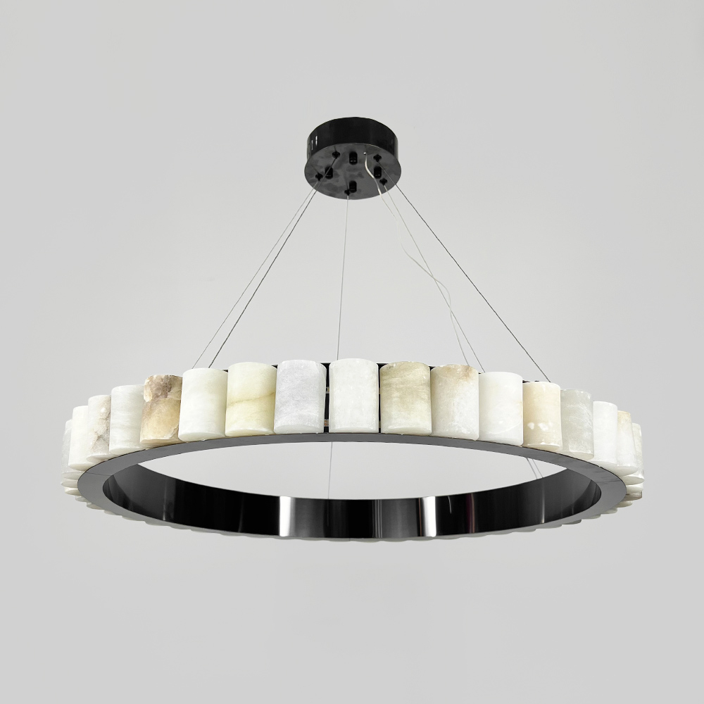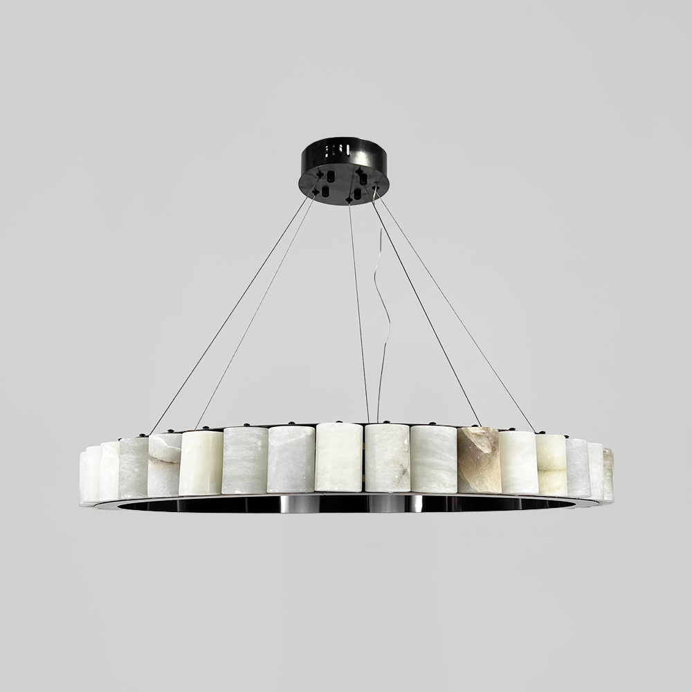 Люстри серії MJ306 — це вишуканий і сучасний елемент для будь-якого інтер'єру, який поєднує мінімалістичний дизайн з природною елегантністю. Їх кільцева форма з металевим центральним корпусом і зовнішніми елементами з мармуру, створює чудовий баланс між класичними матеріалами та передовими технологіями освітлення. Світлодіоди вбудовані в кожен мармуровий сегмент і випромінюють нейтральне світло, забезпечуючи рівномірне і м'яке освітлення в будь-якому просторі. У серії представлені два кольори металевого корпусу: чорний та латунь, а також два розміри: діаметр 60 см (потужність 22 Вт) і 80 см (потужність 30 Вт), з однаковою висотою підвісної частини — 8 см. Регульована висота підвісу дозволяє легко адаптувати ці люстри для приміщень з різною висотою стелі. Вигляд люстри підкреслюється тим, як світло м’яко проникає крізь структуру мармуру, додаючи інтер’єру не тільки елегантності, але й глибини. Ці люстри стануть чудовим вибором для віталень, спалень, зон відпочинку або над обіднім столом, додаючи інтер’єру витонченого шарму та функціональності.