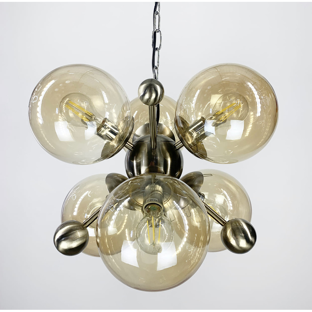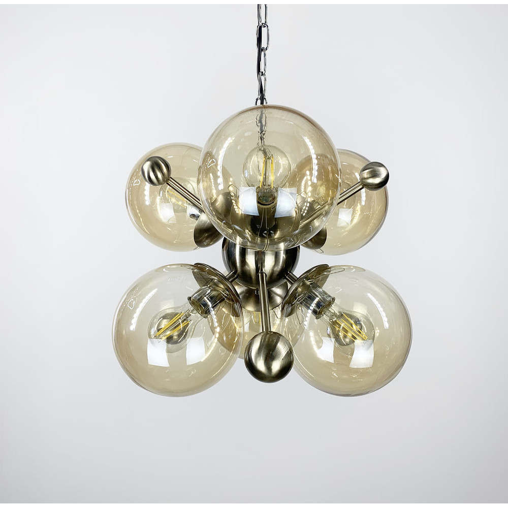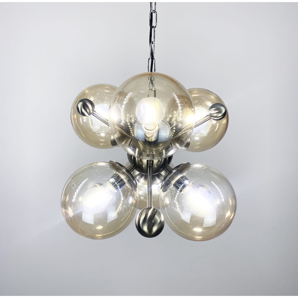 Немає відгуків про товар Підвісна люстра у корпусі кольору satin з 6 янтарними плафонами Ø50 см