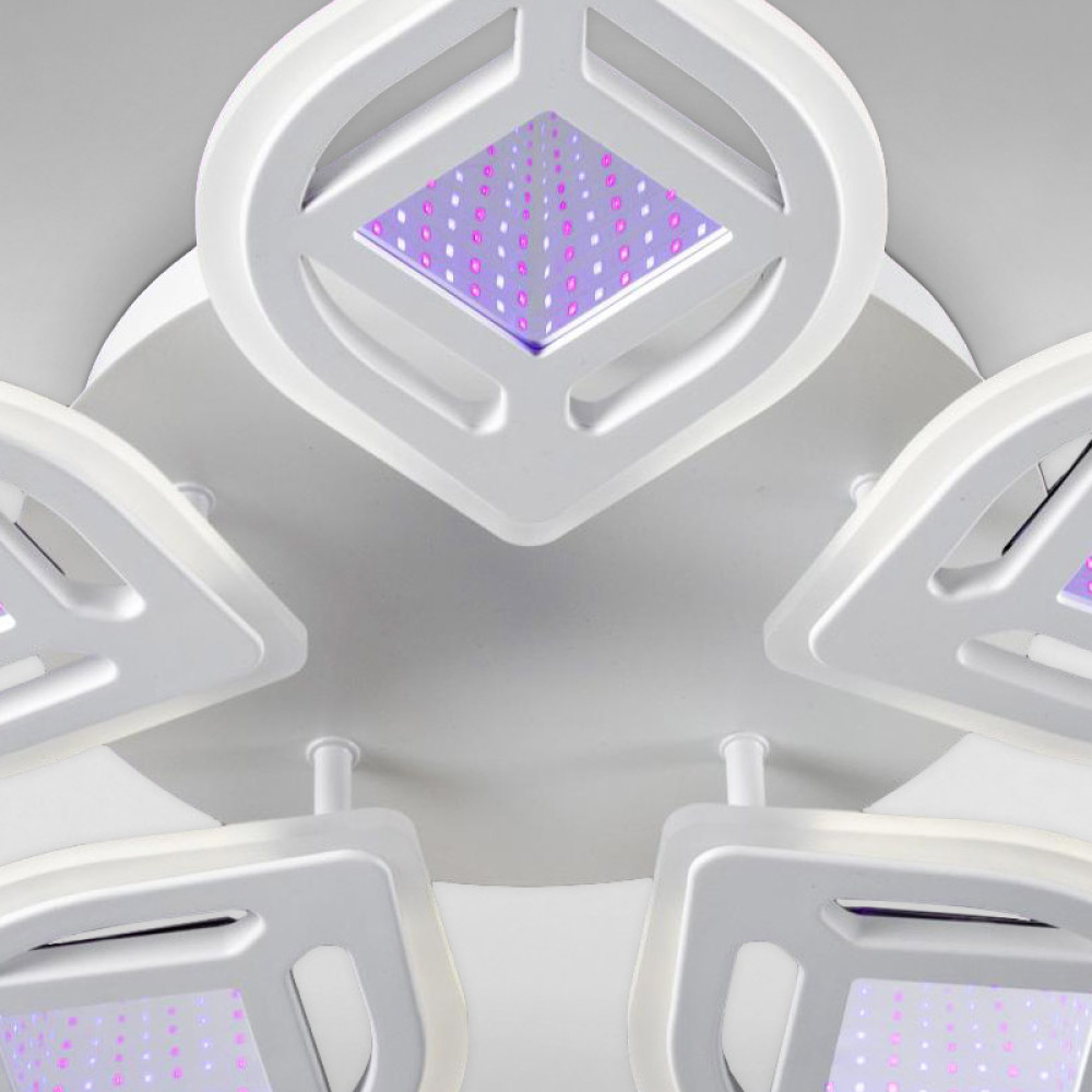 Світлодіодна люстра має кілька режимів: холодний 6000К, нейтральний 4500К, теплий 3000К, LED підсвічування, суміщений режим - будь-яке основне світло плюс світлодіодне підсвічування - все залежить від вашого настрою!