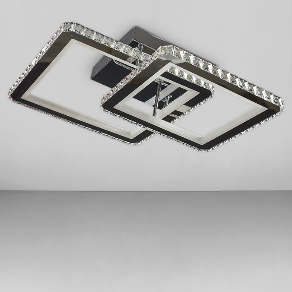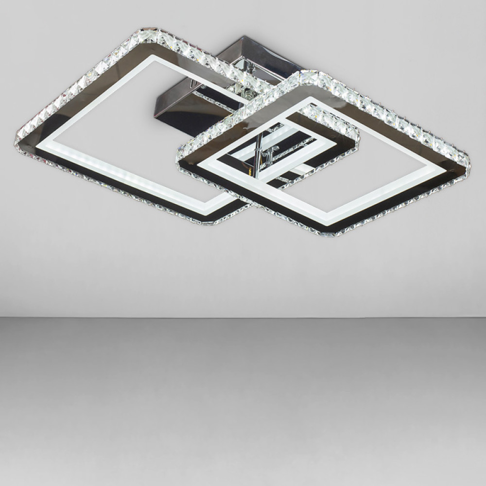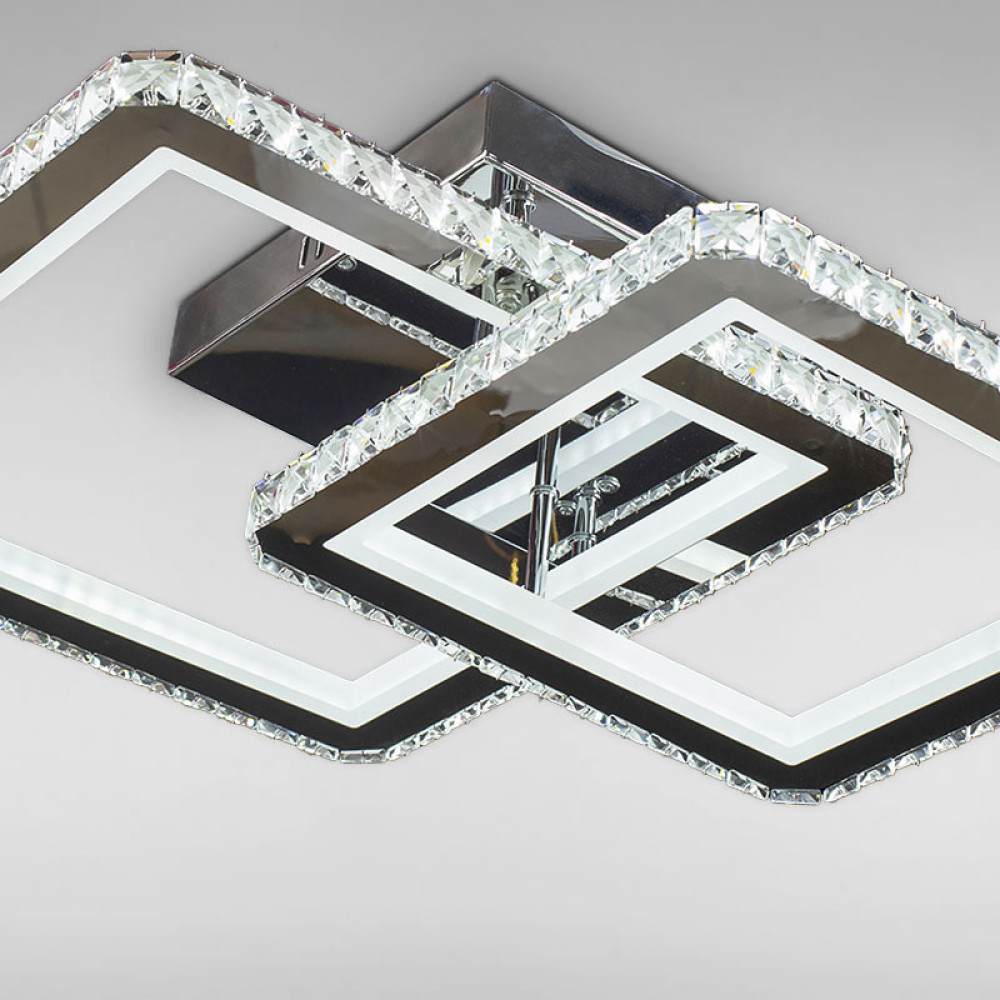 Перед Вами результат поєднання найкращих практик у сучасному освітленні. Світлодіодна люстра має 2 джерела світла з кришталевими елементами, каркас металевий хромового кольору, і пульт управління.