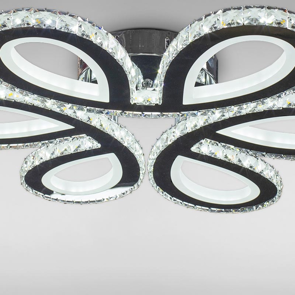 Перед Вами результат поєднання найкращих практик у сучасному освітленні. Світлодіодна люстра має 3 джерела світла з кришталевими елементами, каркас металевий хромового кольору, і пульт управління.