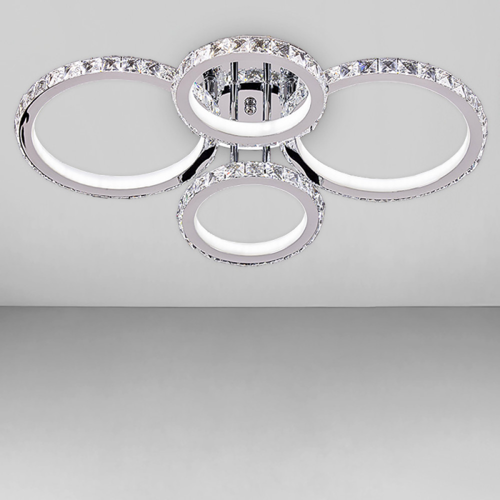 Перед Вами результат поєднання найкращих практик у сучасному освітленні. Світлодіодна люстра має 4 джерела світла з кришталевими елементами, каркас металевий хромового кольору, димер і пульт управління.