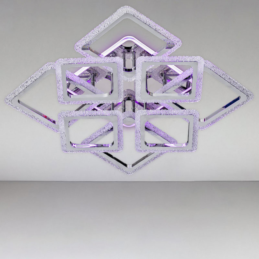 Стельова люстра LED з підсвічуванням Light House SC-18206/4+4C CR+PK/MIX/BL 184W+10W 2.4G 600*600*120 хром