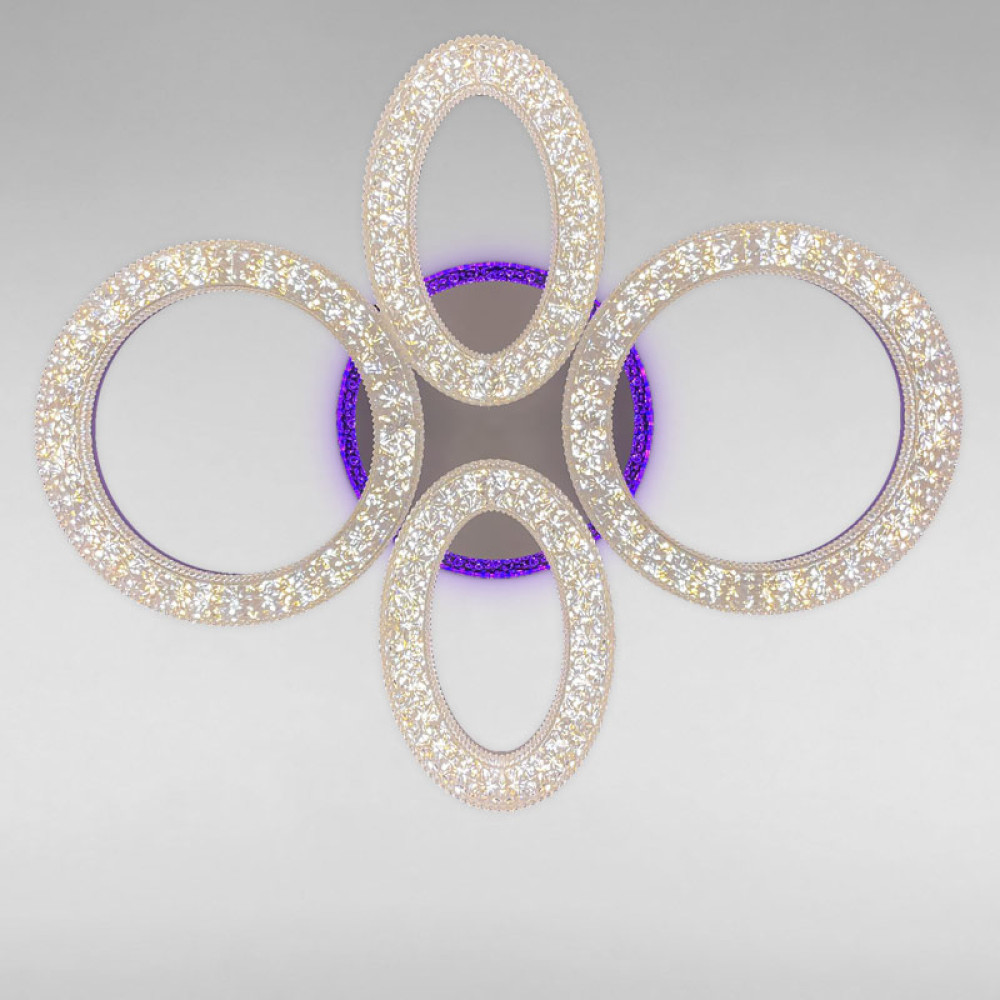 Перед Вами результат поєднання найкращих практик у сучасному освітленні. Люстра має підсвічування корпусу і 4 джерела світла у вигляді світлодіодних кілець і овалів.