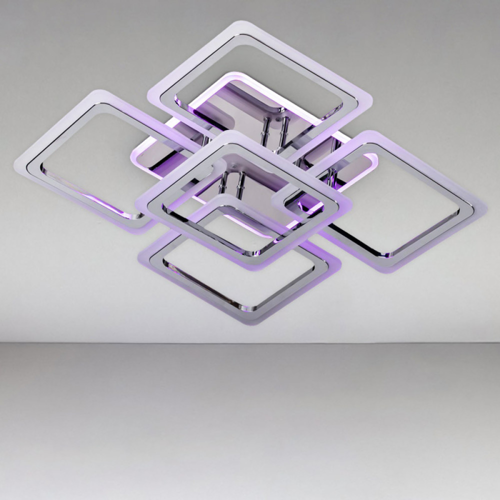 Стельова люстра LED з RGB підсвічуванням Light House SC-18196/4+1C CR+PK/MIX/BL 150W+10W 2.4G 610*610*120 хром