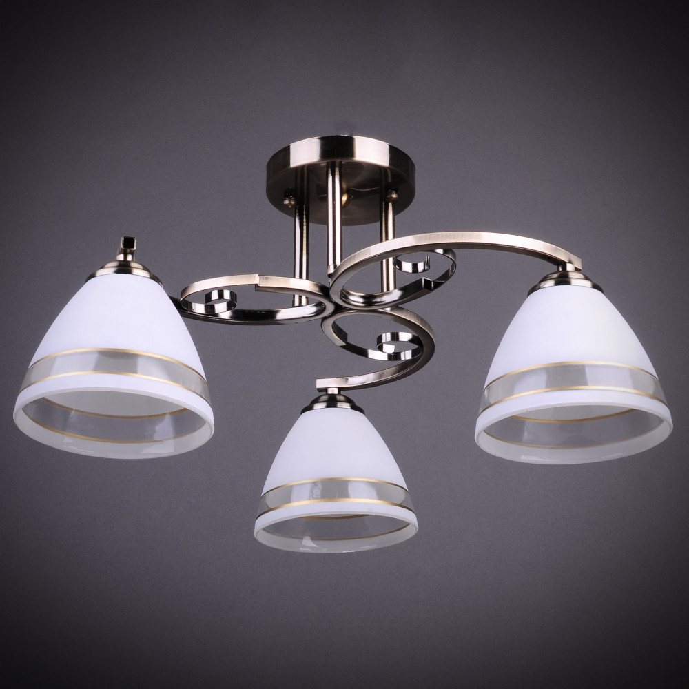 Стельова люстра на три лампи із бронзовими плафонами.