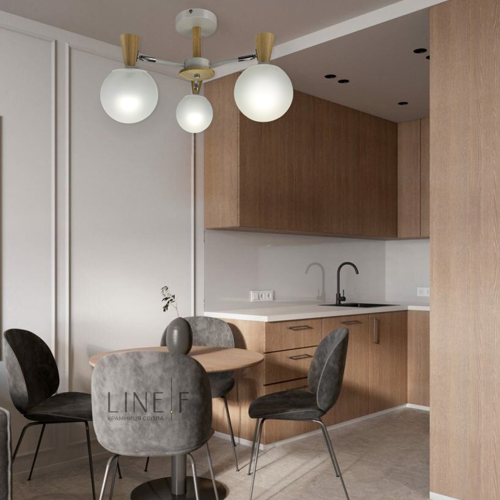Стельова люстра Light House LNF-17393/3 WT біла з елементами дерева