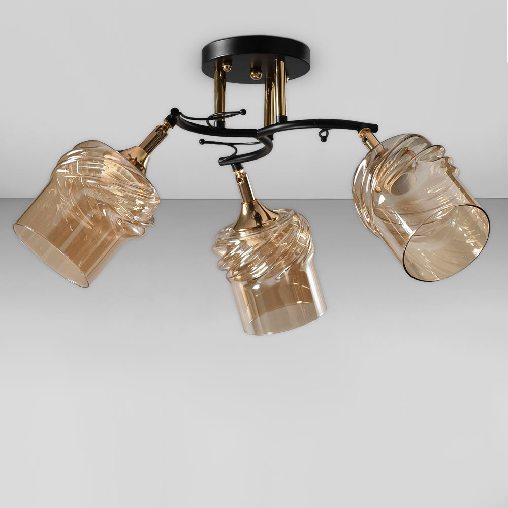 Стильна стельова люстра на три лампи зі скляними декоративними плафонами циліндричної форми.