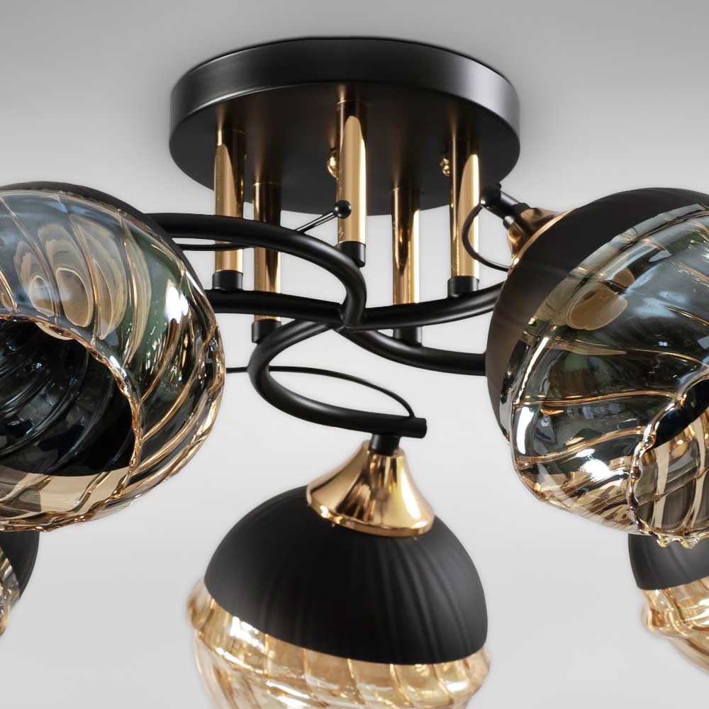 Стельова люстра Light House SC-18741/5 BK+FG D510*230 чорний + золото, колір плафона медовий + чорний