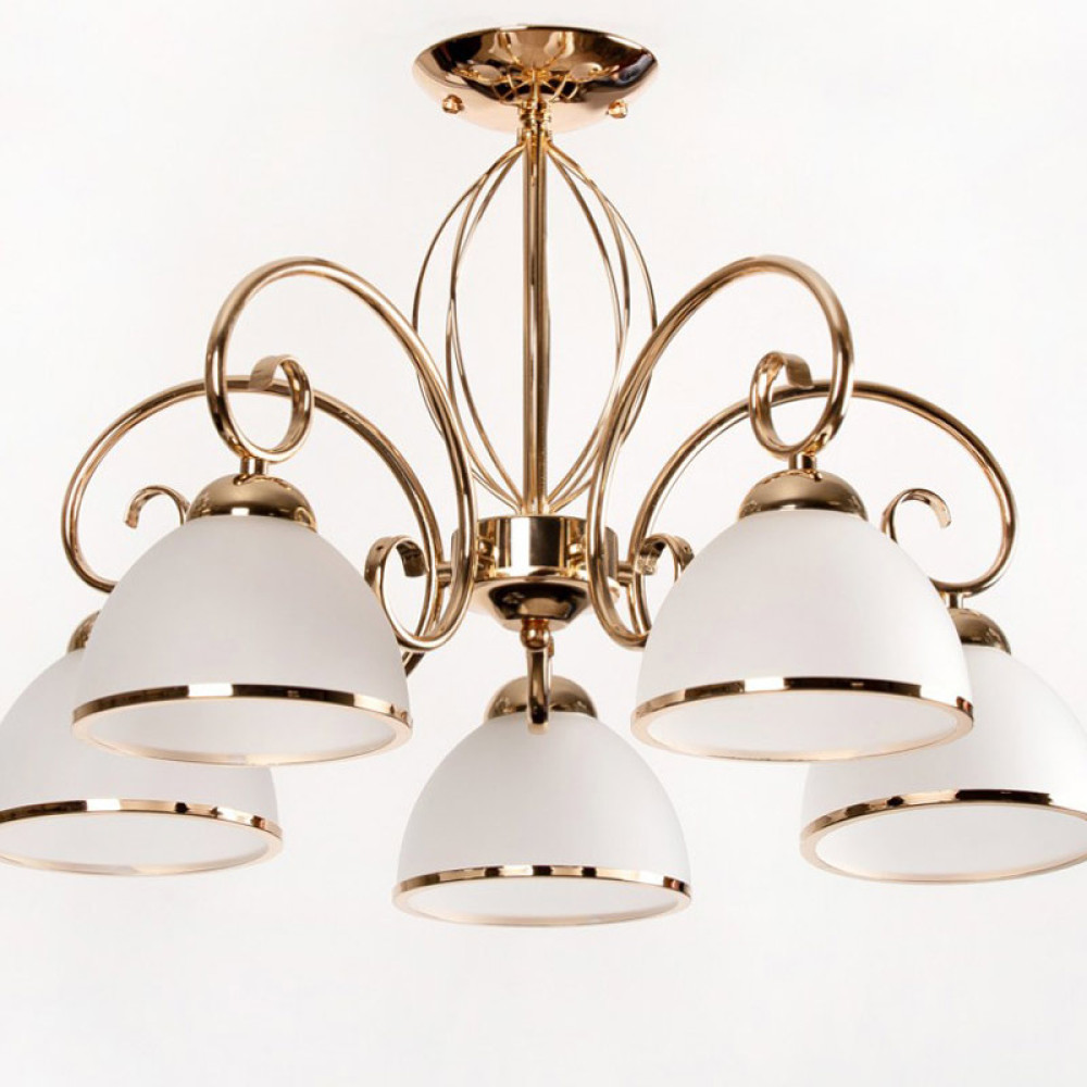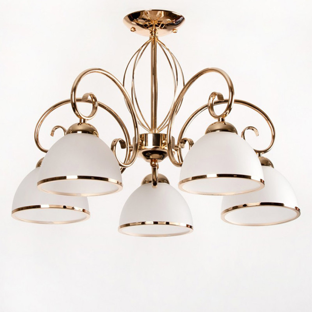 Стельова люстра на п'ять ламп з плафонами у вигляді купола.