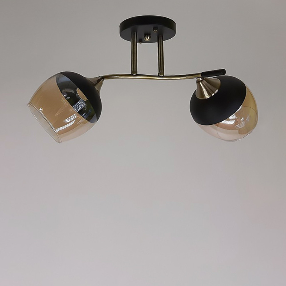 Стельова люстра на дві лампи з плафонами округлої форми.