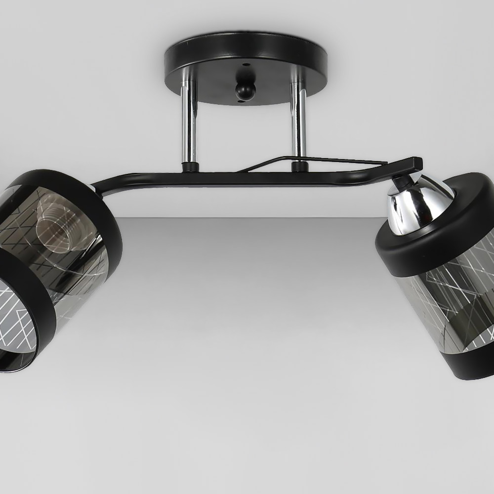Стельова люстра на дві лампи в стилі Лофт зі скляними плафонами форми циліндра.