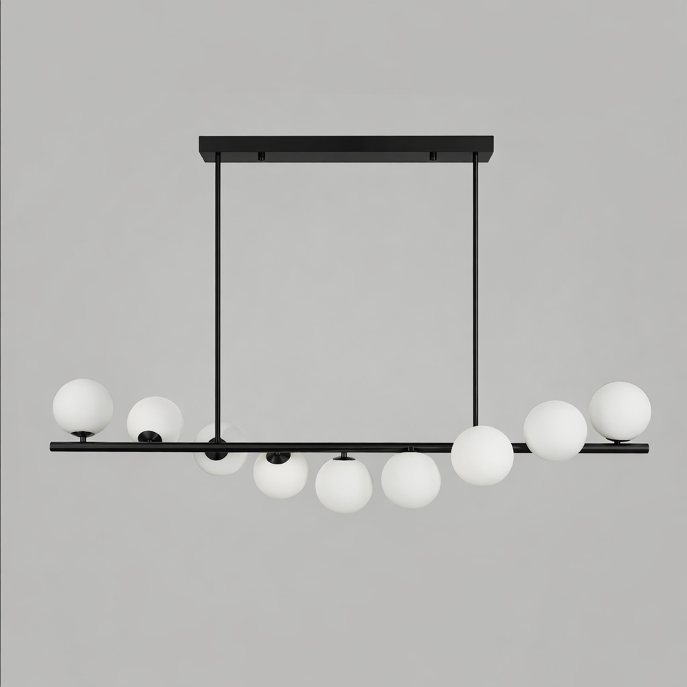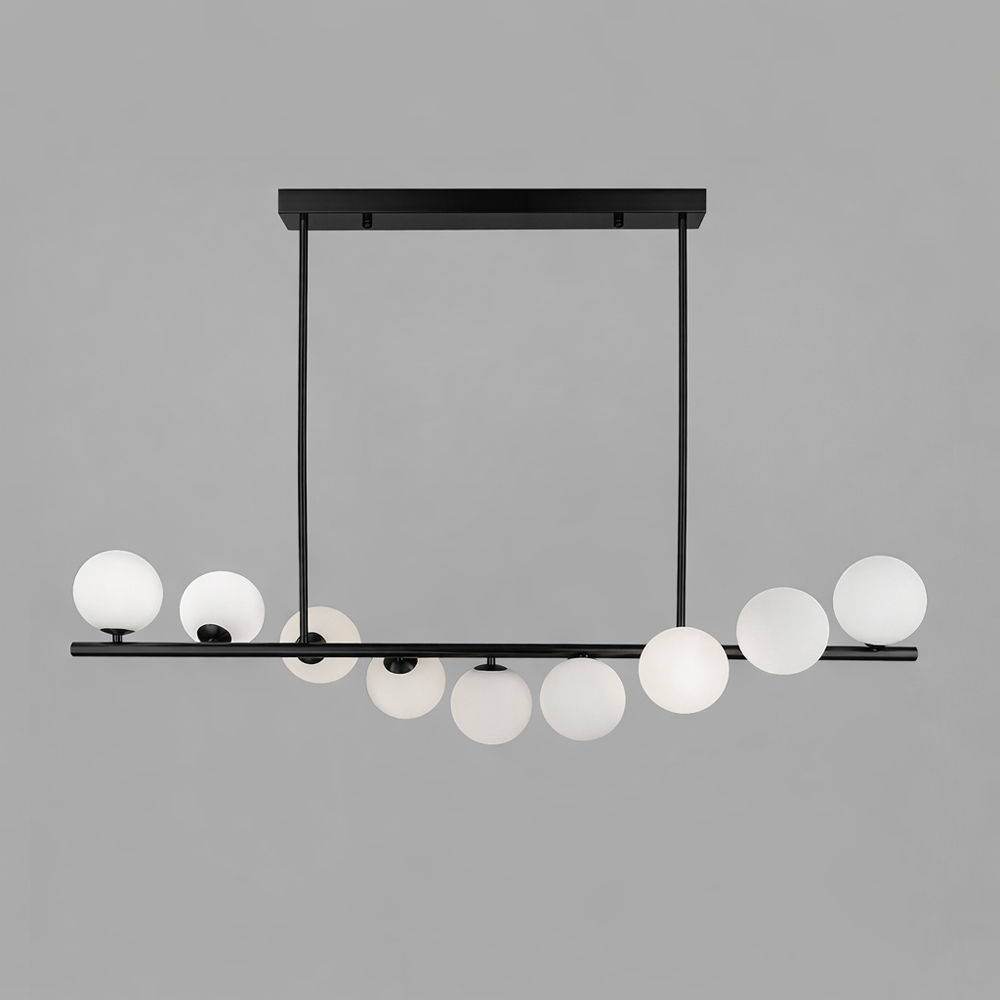 Немає відгуків про товар Видовжена чорна люстра BALLS WAVE з 9 білими плафонами