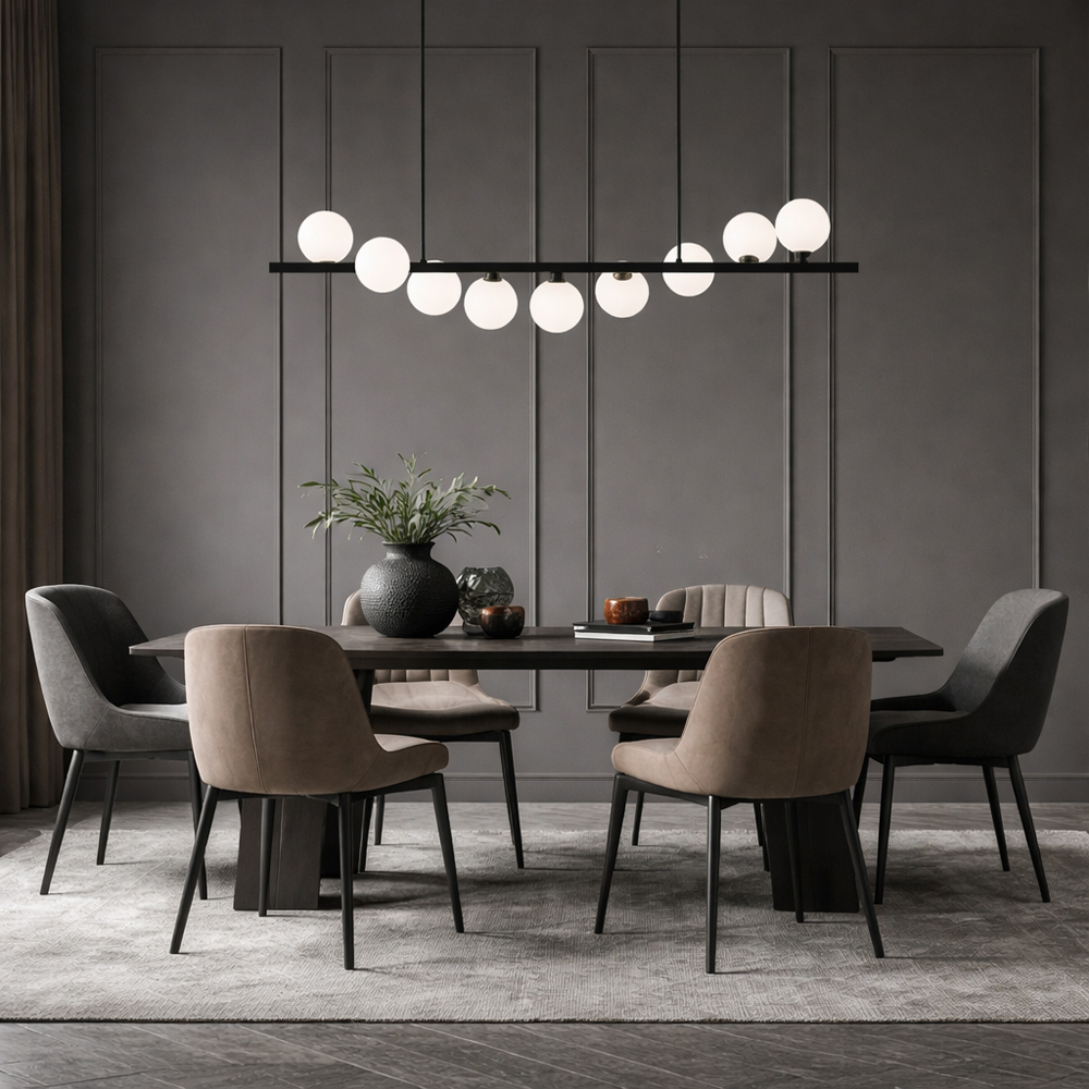 Сучасна видовжена люстра BALLS WAVE — це вишукане поєднання скандинавської стриманості та динамічного дизайну. Її металевий корпус утворює плавну хвилю, навколо якої гармонійно розташовані білі скляні плафони діаметром 10 см, створюючи відчуття легкості та руху. Завдяки такій формі світильник виглядає повітряним, але водночас виразним акцентом простору. У кожному плафоні передбачено цоколь G9, що дозволяє використовувати сучасні енергоефективні лампи та регулювати яскравість освітлення відповідно до потреб інтер’єру. Світло м’яко розсіюється крізь скло, формуючи комфортну атмосферу без різких тіней. Модель представлена у двох кольорах корпусу — латунь та чорний, а також у двох комплектаціях: на 9 плафонів (100 см) та 11 плафонів (120 см). Висота люстри регулюється в межах 35-65 см, що дозволяє ідеально адаптувати її до висоти стелі. BALLS WAVE стане стильним рішенням для освітлення обідніх зон у кухні, їдальні чи вітальні, а також чудово підкреслить статус комерційних просторів — особливо зон рецепції, лаунжів або сучасних студій. Це люстра, яка не просто освітлює, а формує характер інтер’єру.