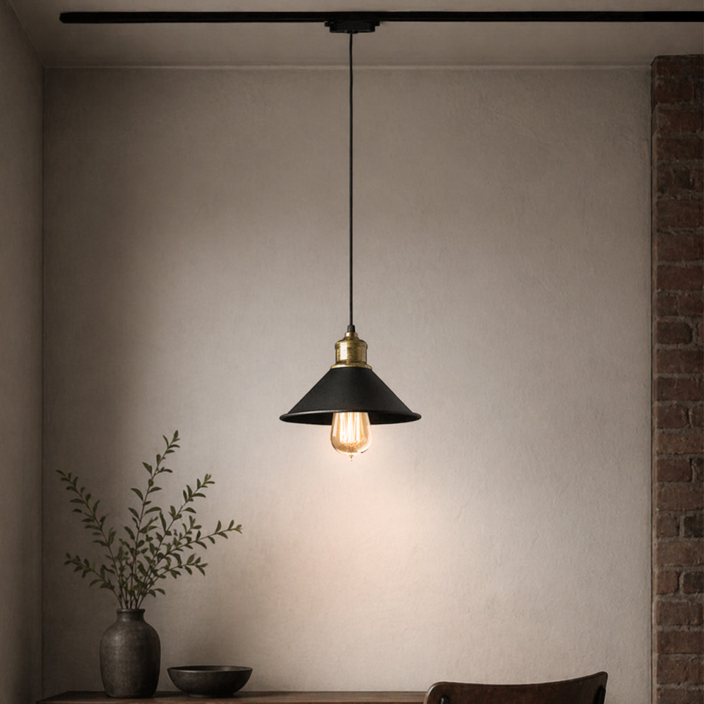 Трековый подвесной светильник MSK Electric Harlem — это универсальное решение для современного интерьера, выполненное в стиле лофт с акцентом на простоту форм и функциональность. Модель сочетает в себе лаконичный черный металлический плафон и декоративные элементы под латунь, что придает светильнику выразительный и стильный внешний вид. Такой дизайн отлично вписывается в интерьеры в стиле лофт, минимализм, индустриальный и современный. Светильник предназначен для установки на шинопровод, что делает его максимально гибким в использовании. Благодаря трековой системе вы можете легко перемещать светильник по рейке, менять его расположение и создавать нужные световые акценты в помещении. Это удобно для зонирования пространства, подсветки обеденной зоны, барной стойки, рабочей поверхности или декоративных элементов интерьера. Подвесная конструкция с проводом длиной 50 см позволяет разместить светильник на оптимальной высоте. Длина провода не регулируется стандартно, однако при необходимости может быть изменена под заказ, что дает дополнительные возможности для адаптации под ваш интерьер. Светильник рассчитан на использование лампы с цоколем E27, что обеспечивает широкий выбор источников света — от классических до современных LED-ламп. Для создания максимально эффектного вида рекомендуется использовать декоративные лампы типа Edison. Лампа в комплект не входит. Плафон выполнен из прочного металла, устойчивого к износу и нагреву, что обеспечивает надежность и долговечность. Светильник подходит как для жилых помещений, так и для коммерческих пространств — кафе, ресторанов, магазинов и шоурумов. Обратите внимание, что шинопровод в комплект не входит и приобретается отдельно. С помощью соединительных элементов можно создавать различные конфигурации освещения.