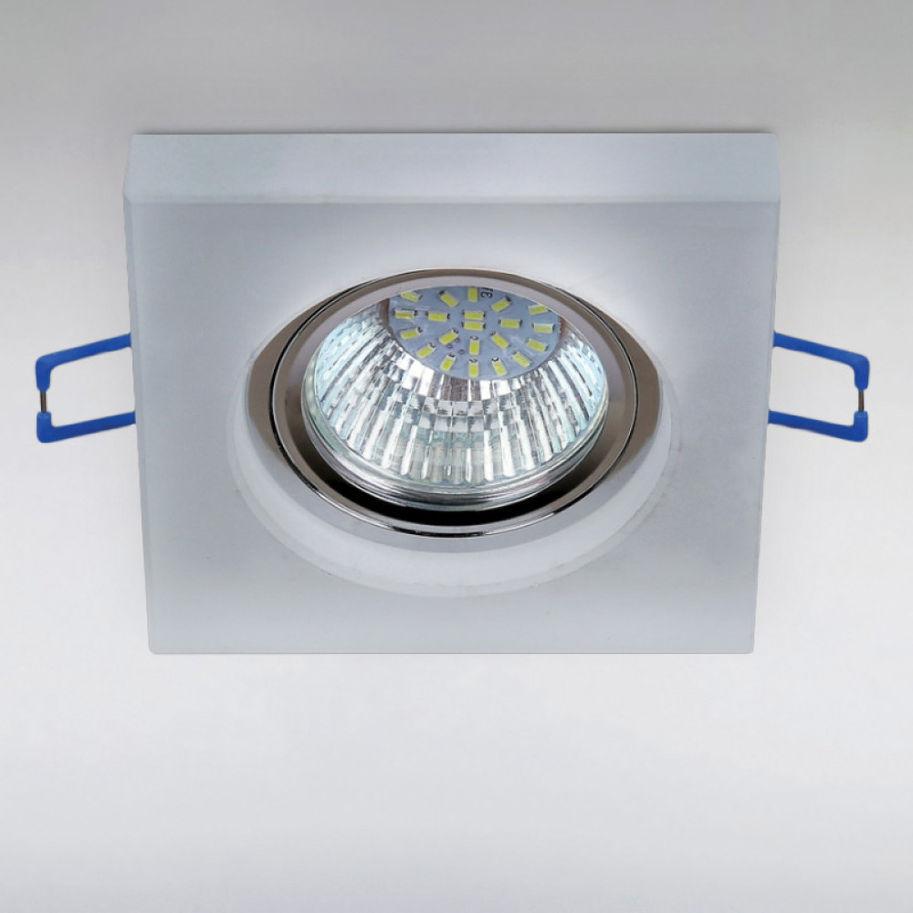 Стандартный потолочный встраиваемый точечный светильник, питается от сети 220В, имеет механизм легкой замены лампы. Идеально подходит для низких потолков.