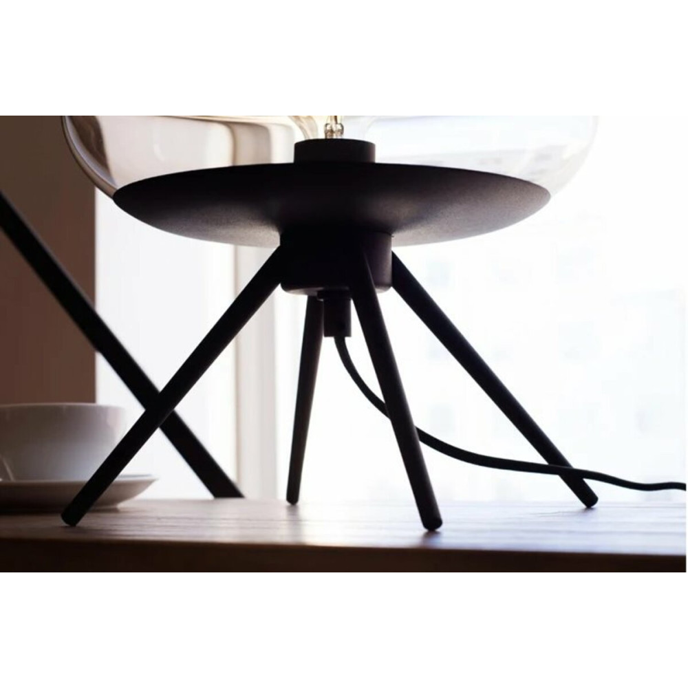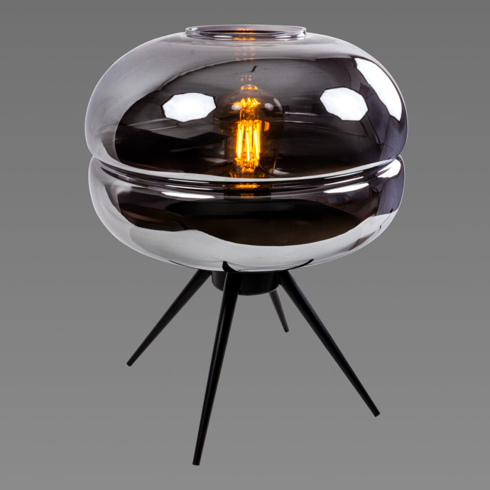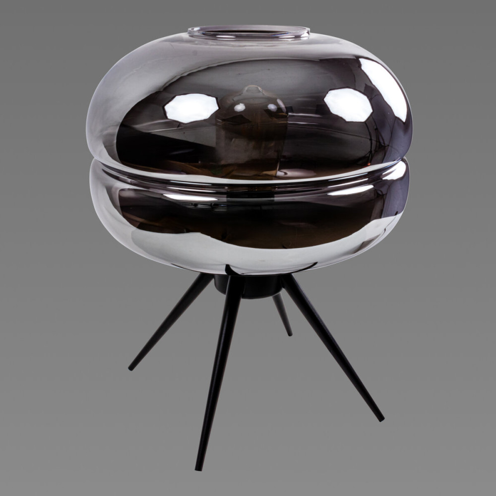 Декоративна настільна лампа в сучасному стилі на ніжках, одна лампа зі скляним плафоном.