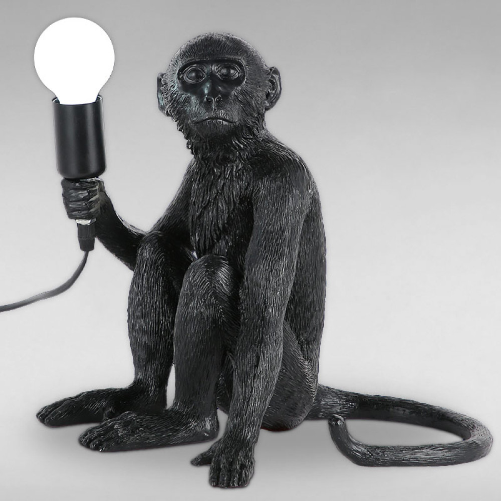 Декоративна настільна лампа на одну лампу у вигляді сидячої мавпочки з лампочкою в лапці.