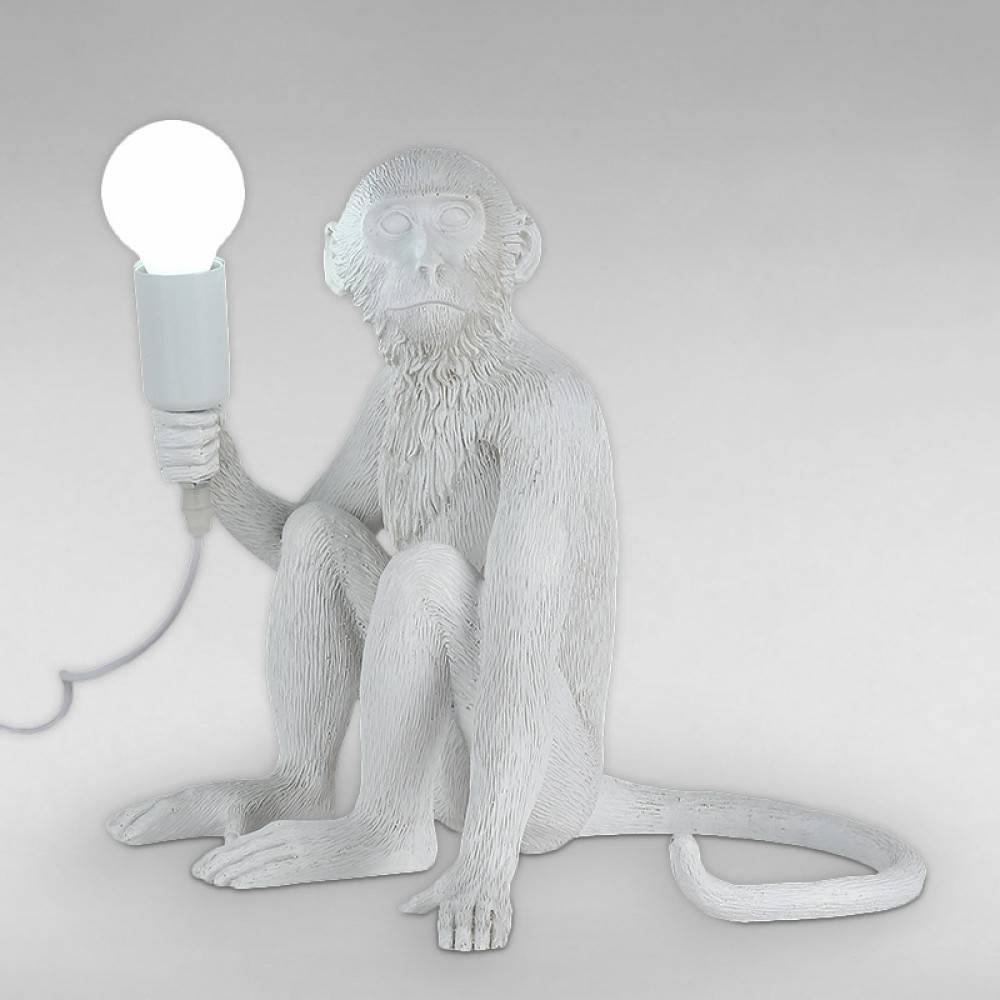 Декоративна настільна лампа на одну лампу у вигляді сидячої мавпочки з лампочкою в лапці.
