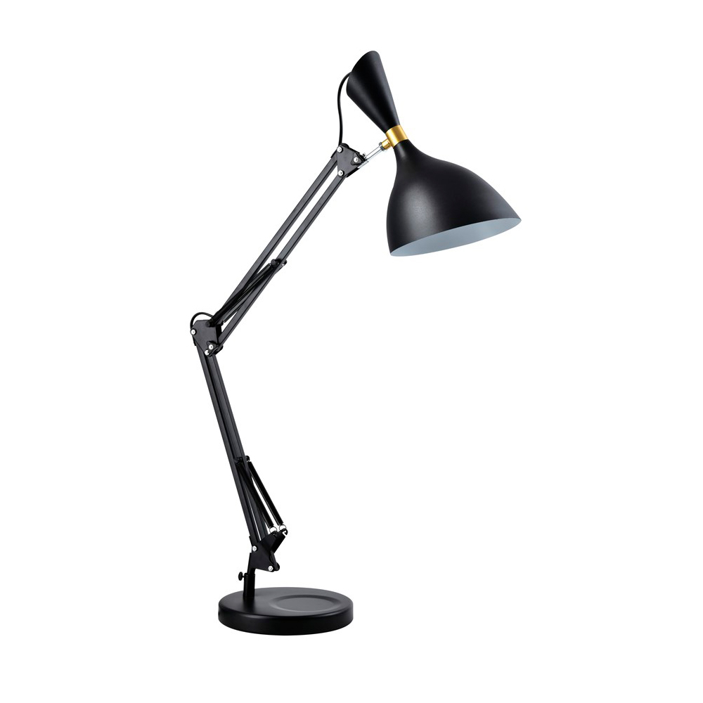 Декоративна настільна лампа в сучасному стилі на одну лампу на високій регульованій стійці з поворотним плафоном.