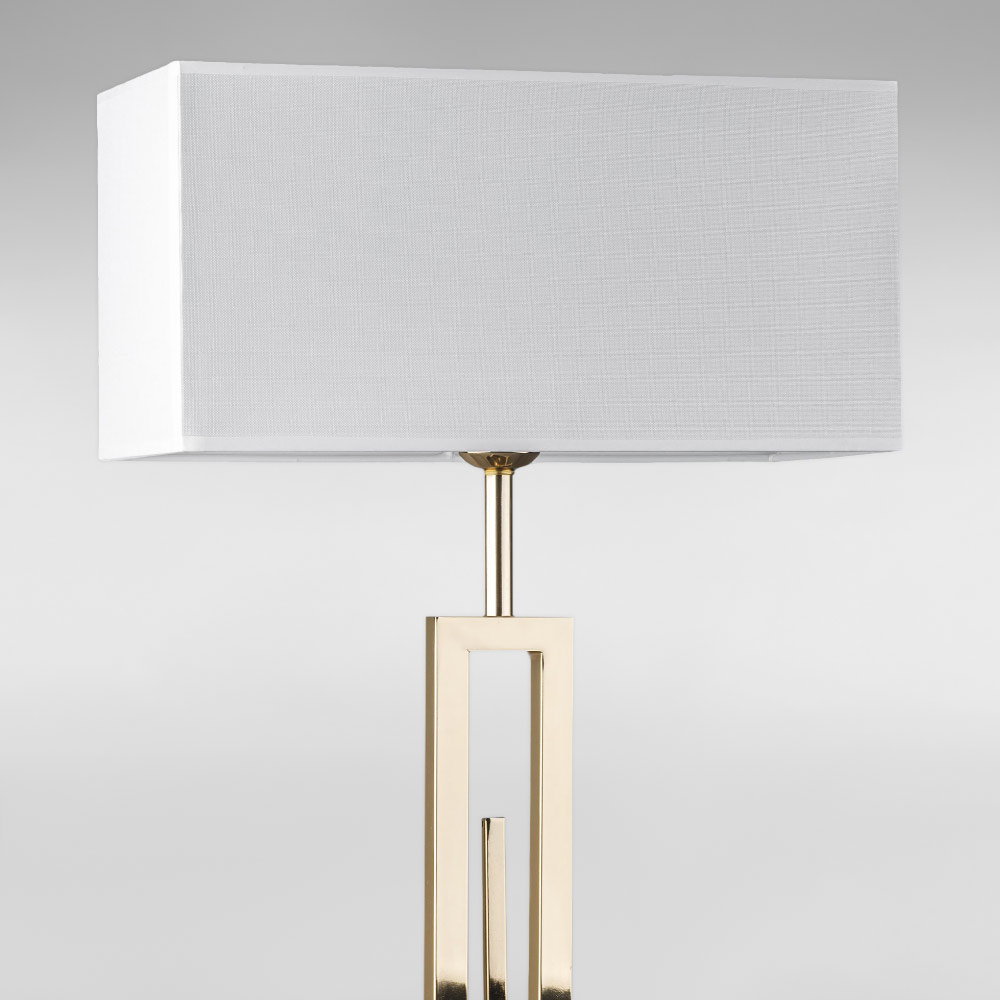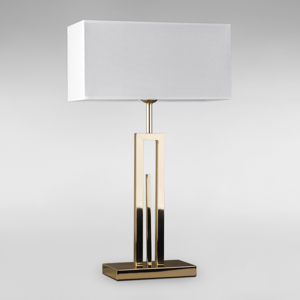 Декоративна настільна лампа в сучасному стилі на одну лампу з тканинним абажуром прямокутної форми.