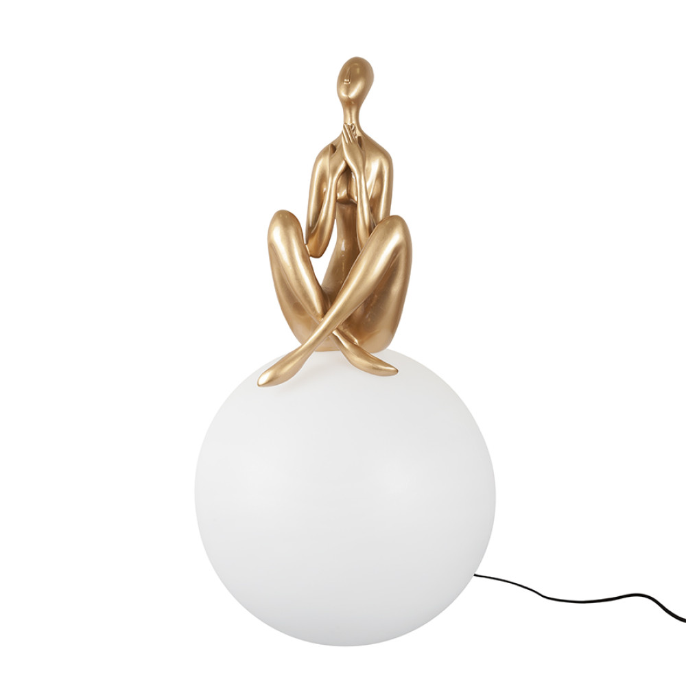 Нестандартна настільна лампа на одну лампочку з плафоном форми кулі та декоративною фігуркою людини. Може використовуватися як настільна лампа або як світильник.