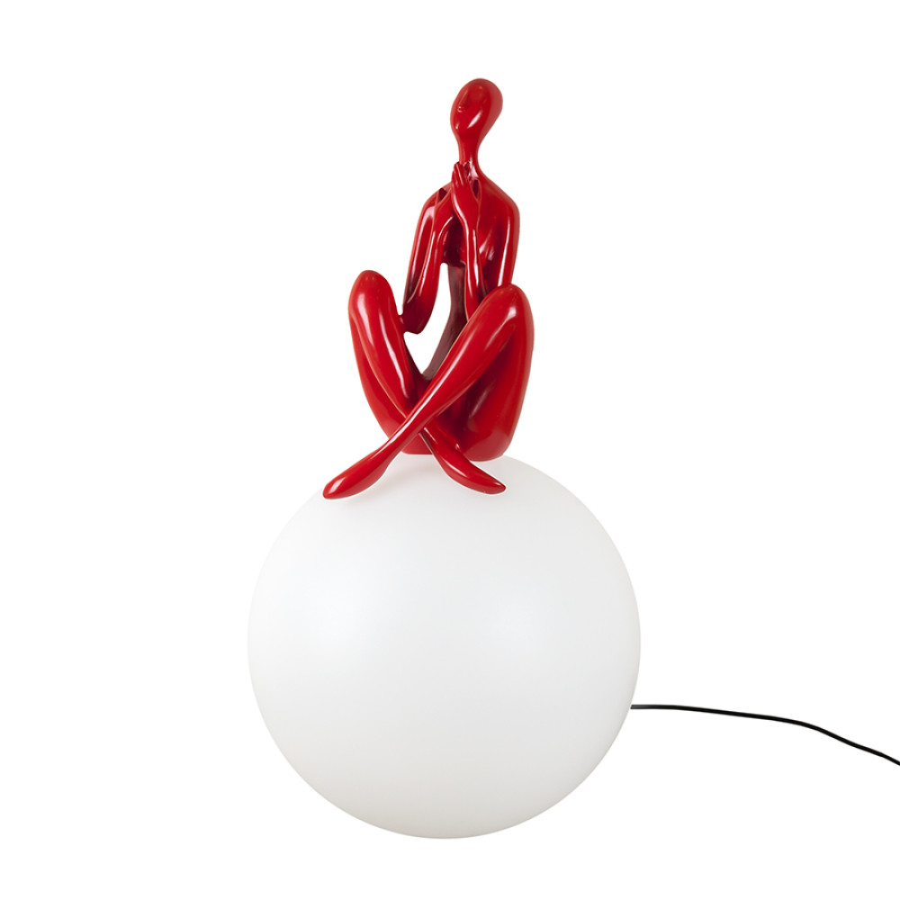 Нестандартна настільна лампа на одну лампочку з плафоном форми кулі та декоративною фігуркою людини. Може використовуватися як настільна лампа або як підлоговий світильник.