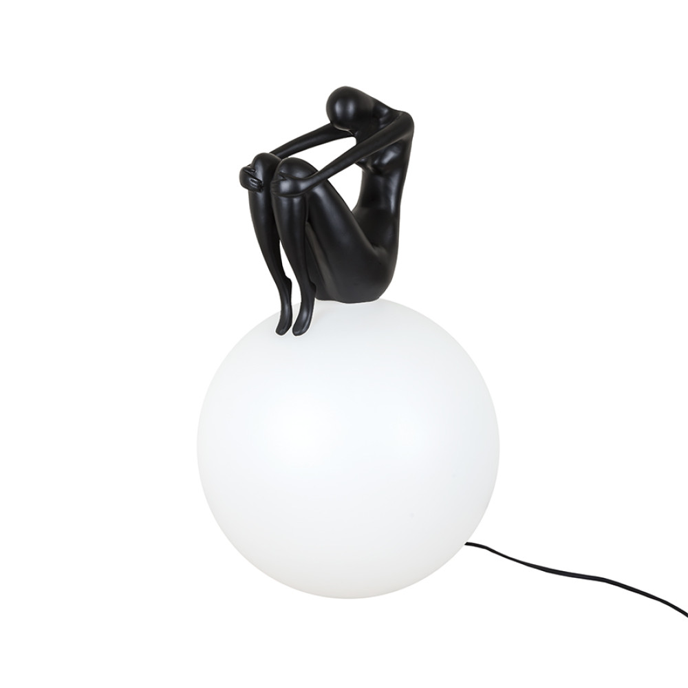 Нестандартна настільна лампа на одну лампочку з плафоном форми кулі та декоративною фігуркою людини. Може використовуватися як настільна лампа або як підлоговий світильник.