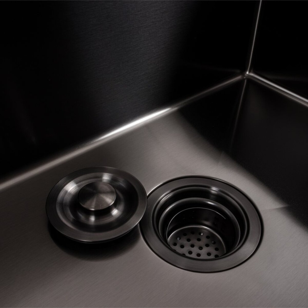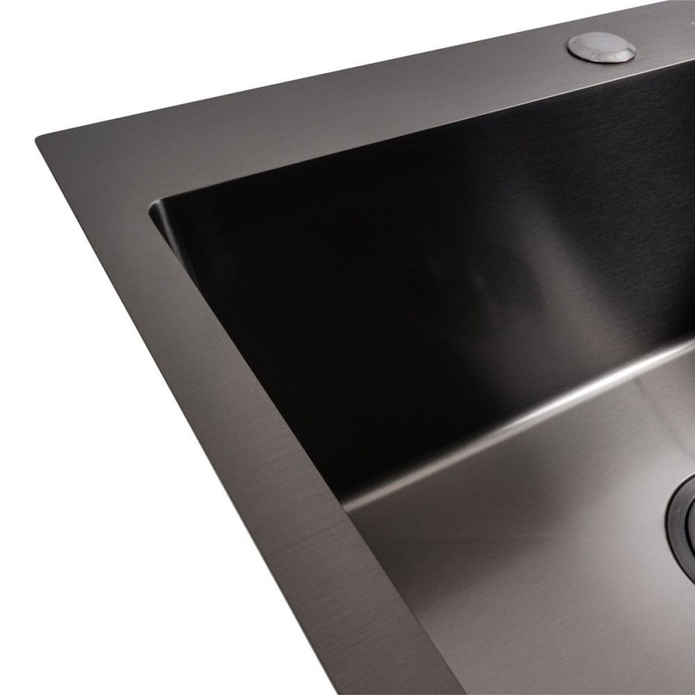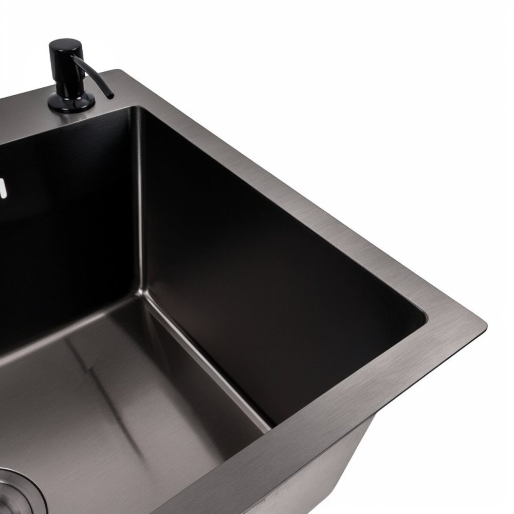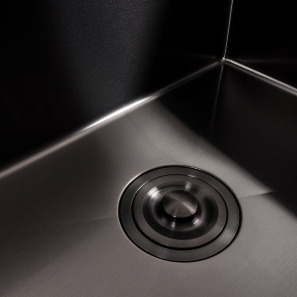 Покриття мийки: PVD чорне. Це покриття захищає її від подряпин, потемніння та нальоту. Така кухонна мийка не боїться високих температур та впливу засобів побутової хімії.