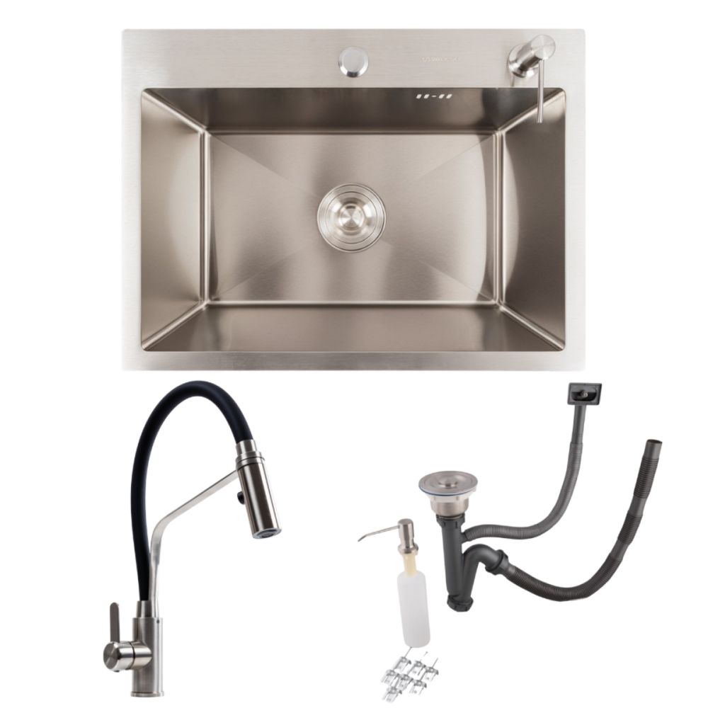 Кухонний комплект: Мийка VALESO Handmade (58x43 см) + Змішувач KN36