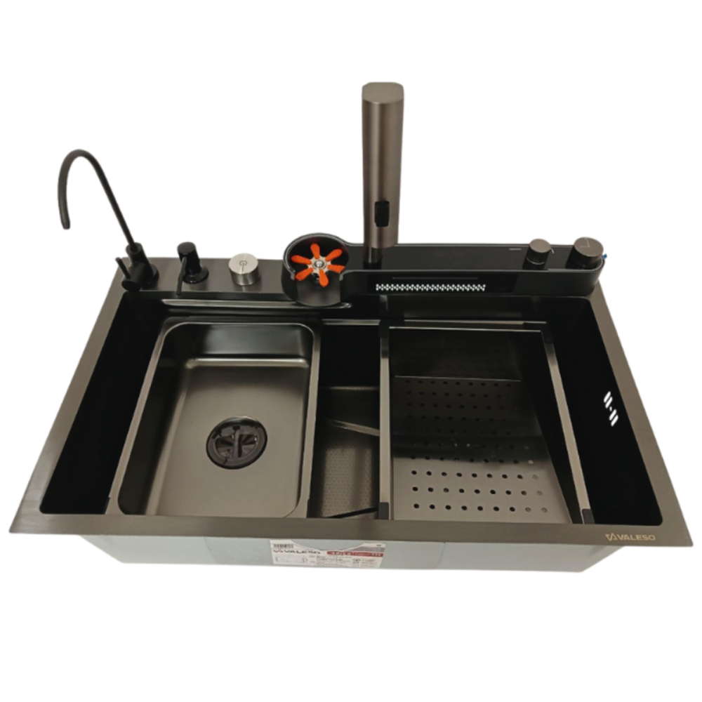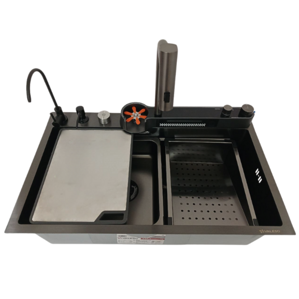 Перетворіть свою кухню на багатофункціональну робочу станцію з інноваційною мийкою VALESO Handmade "Водоспад" у розкішному PVD чорному виконанні. Ця модель поєднує в собі стильний сучасний дизайн та повний набір функцій, що роблять кулінарні процеси максимально комфортними.