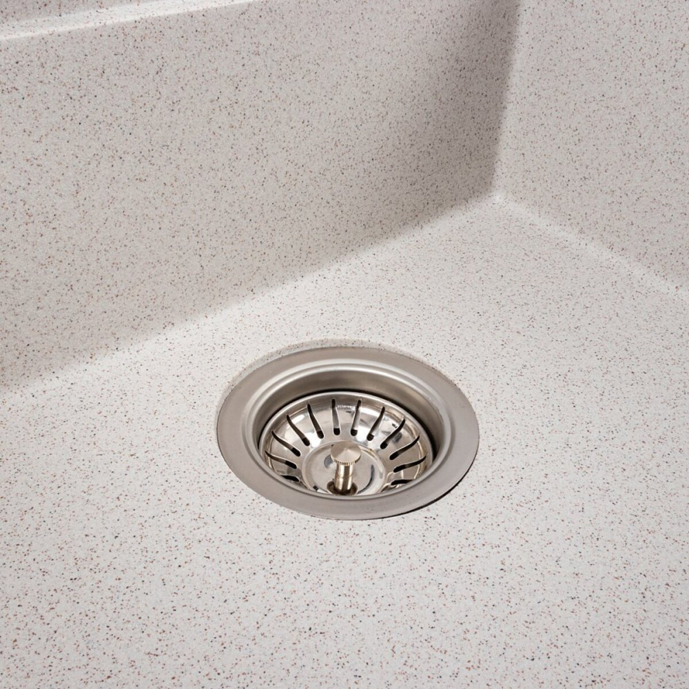 Виріб на 80% складається з натурального кварцу та на 20% з акрилової смоли. Виготовлена за технологією Solid Surface, мийка має однорідну структуру, що забезпечує високу міцність та стійкість до щоденних навантажень.