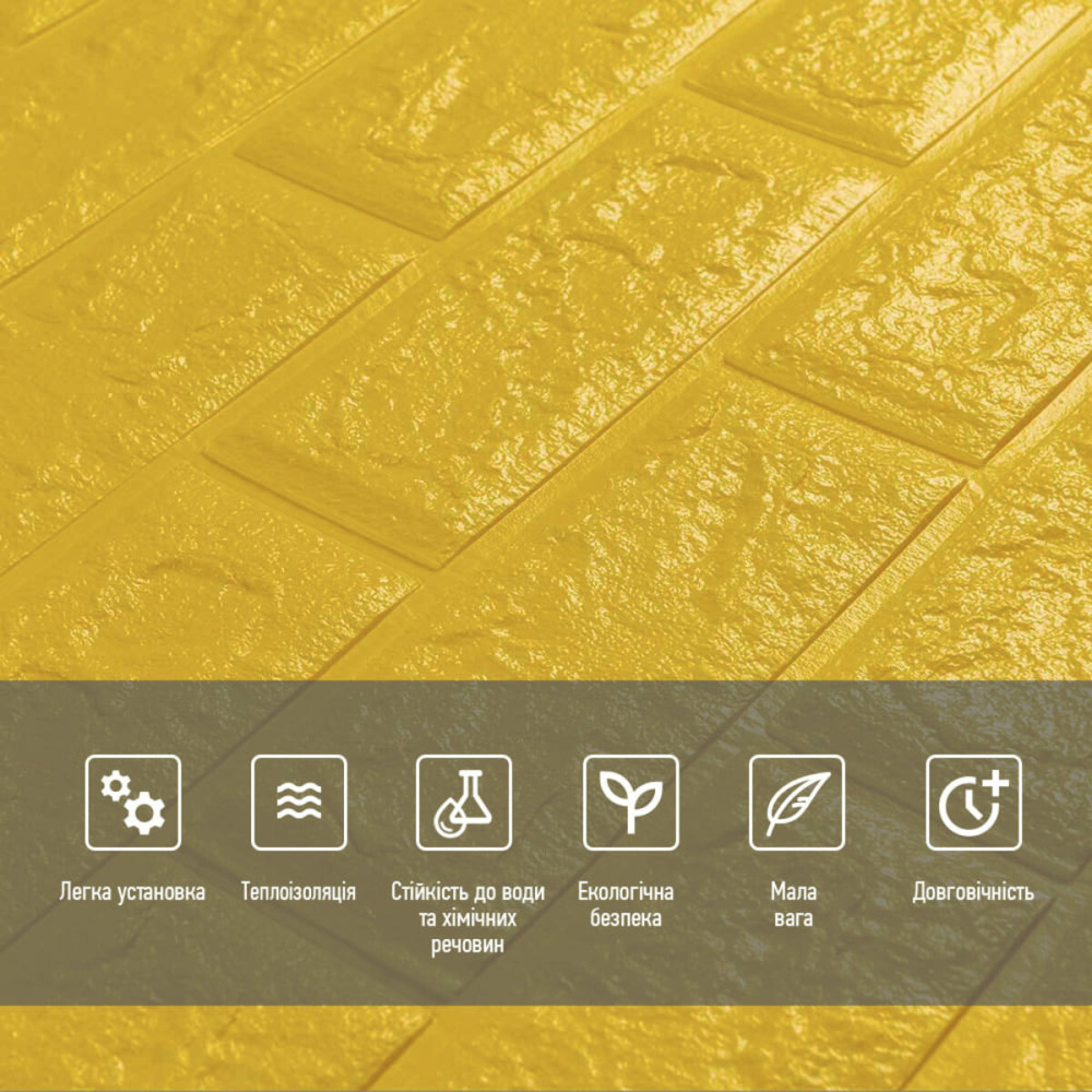 Самоклеючі 3D панелі – декоративне покриття для стін, виконане з легкого та міцного матеріалу – пористого поліпропілену (ППП). Основна особливість - рельєфний малюнок у вигляді цегли в широкій різноманітності колірної гами та наявність клейового шару, що дозволяє встановити панелі без необхідності застосування додаткових матеріалів.