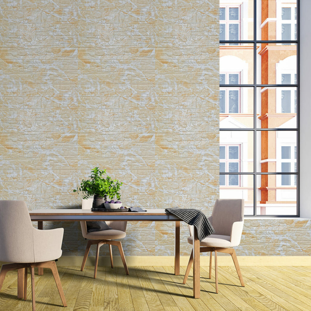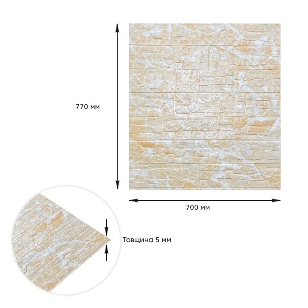 Самоклеюча декоративна 3D панель камінь Бежева рвана цегла 700х770х5мм