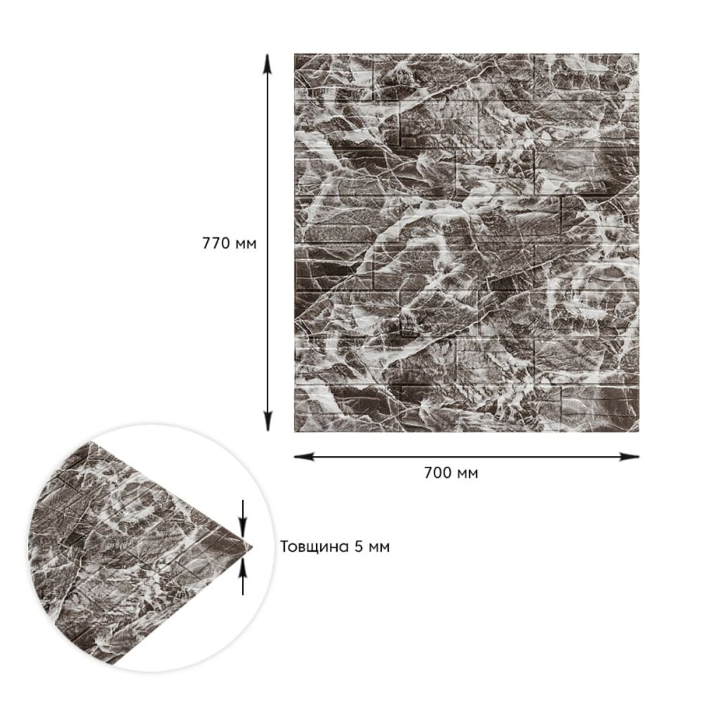 Самоклеюча декоративна 3D панель камінь Сірий рвана цегла 700х770х5мм