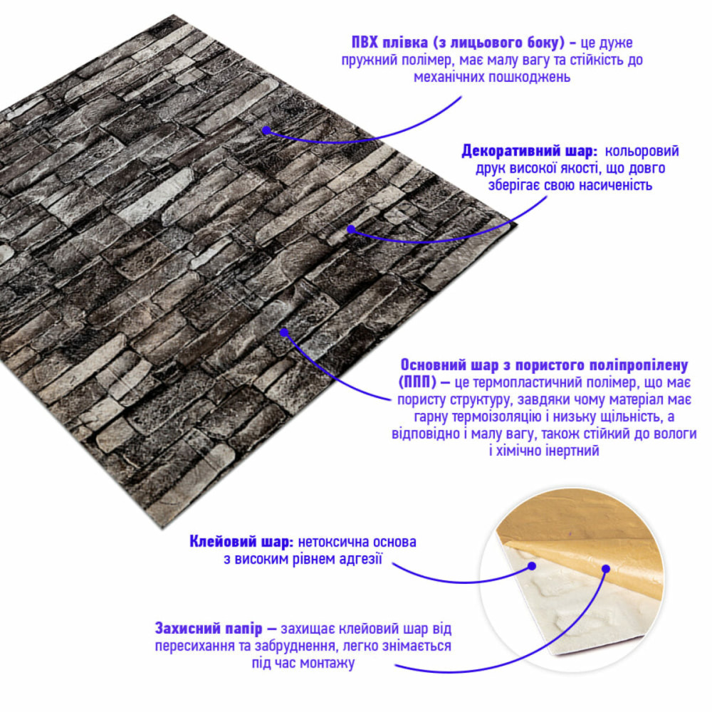 Інструкція з встановлення декоративної 3D панелі під цеглу сірий піщаник: