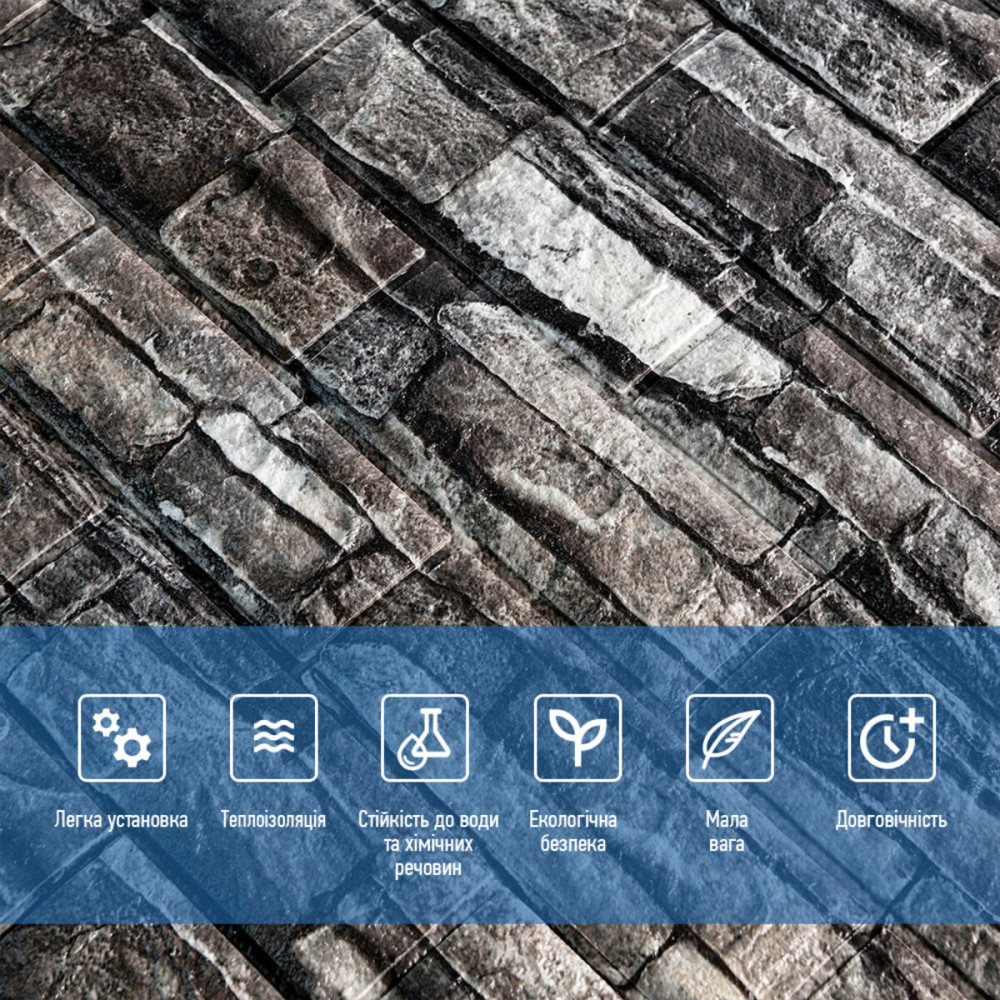 Самоклеюча декоративна 3D панель під цеглу сірий піщаник 700x770x5мм