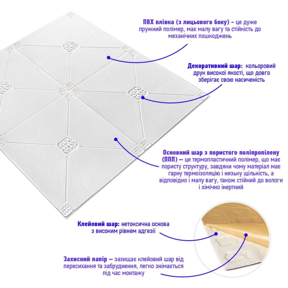 Самоклеюча декоративна стельово-стінова 3D панель (плитка) 700×700×4,5 мм