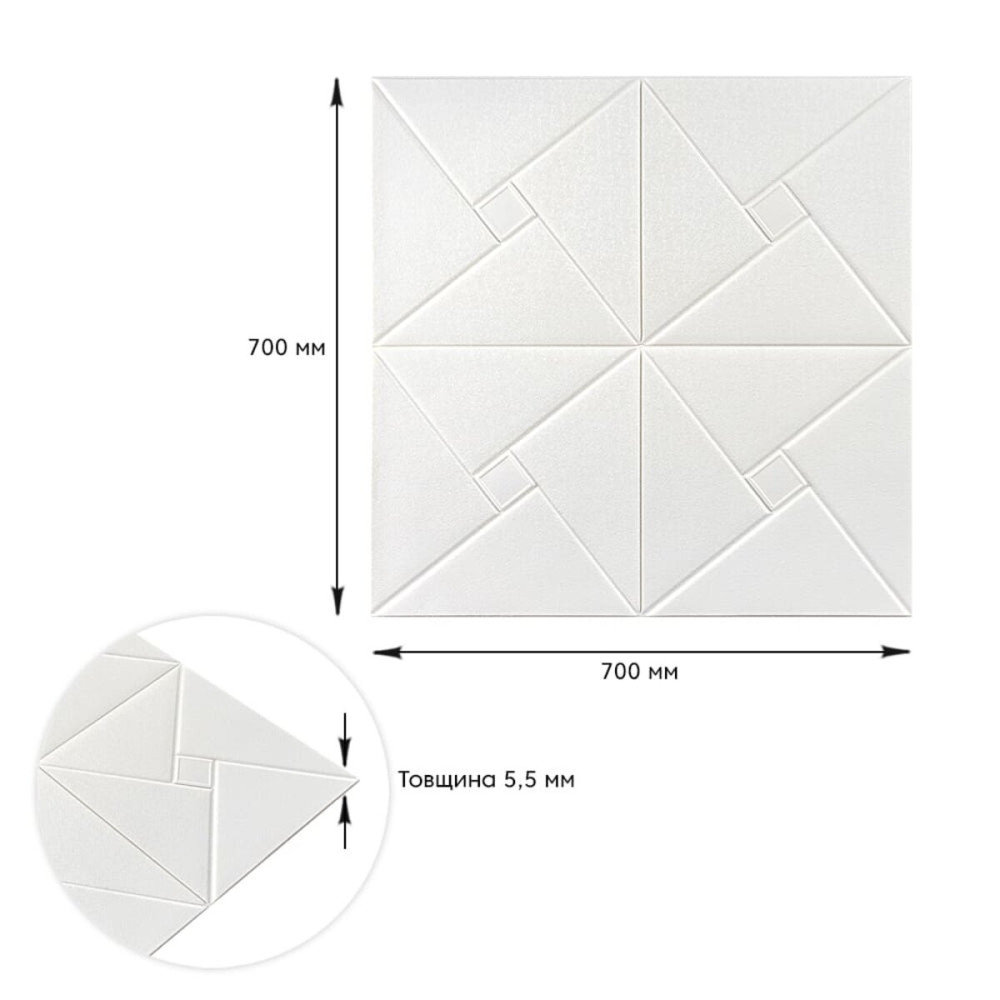 Самоклеюча декоративна стельова стінна 3D панель орігамі 700x700х5.5мм - перетворите ваш ремонт за 1 день.