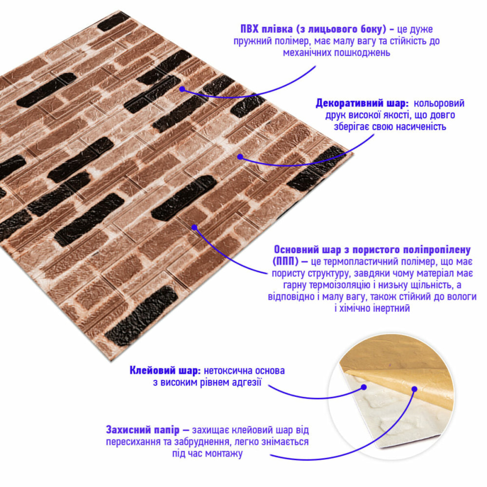 Інструкція з монтажу декоративної 3D панелі «під чорно-синю Катеринославську цеглу»: